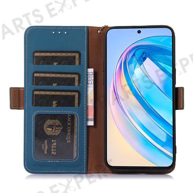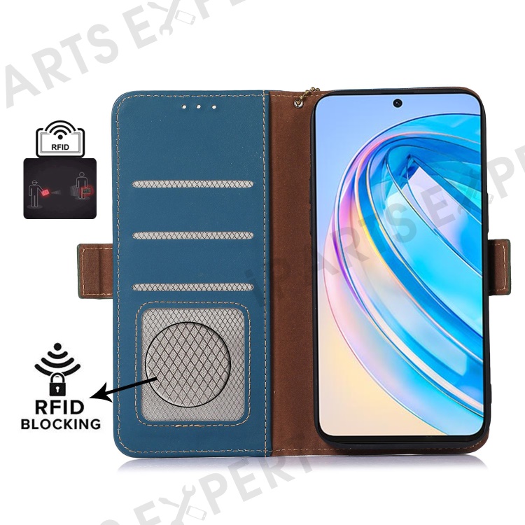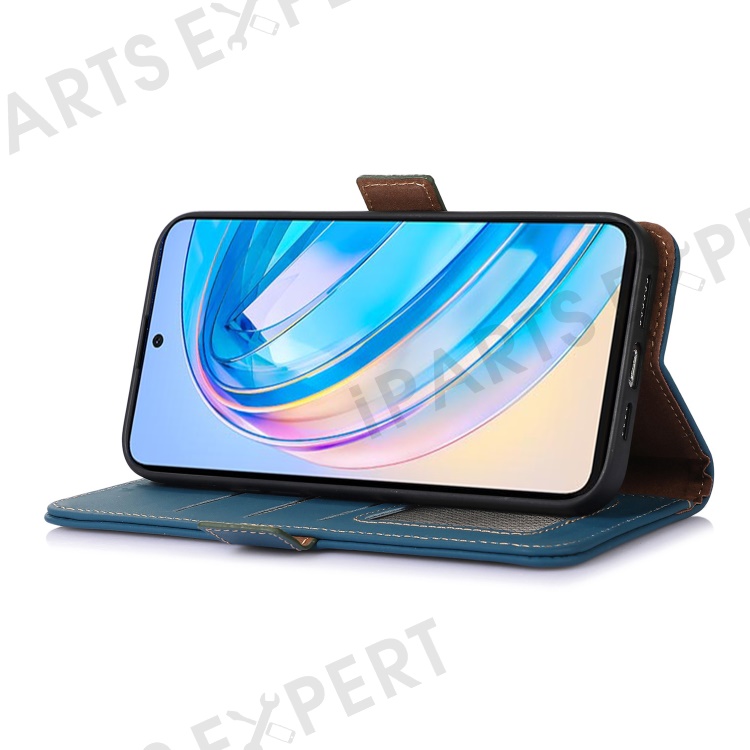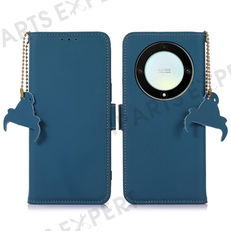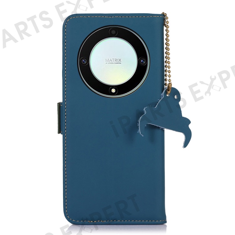 Shockproof Phone Case For Honor X40 5G / X9a 5G / Magic5 Lite 5G Genuine Cow Leather Stand RFID Blocking Phone Flip Wallet Cover - Blue