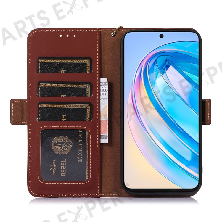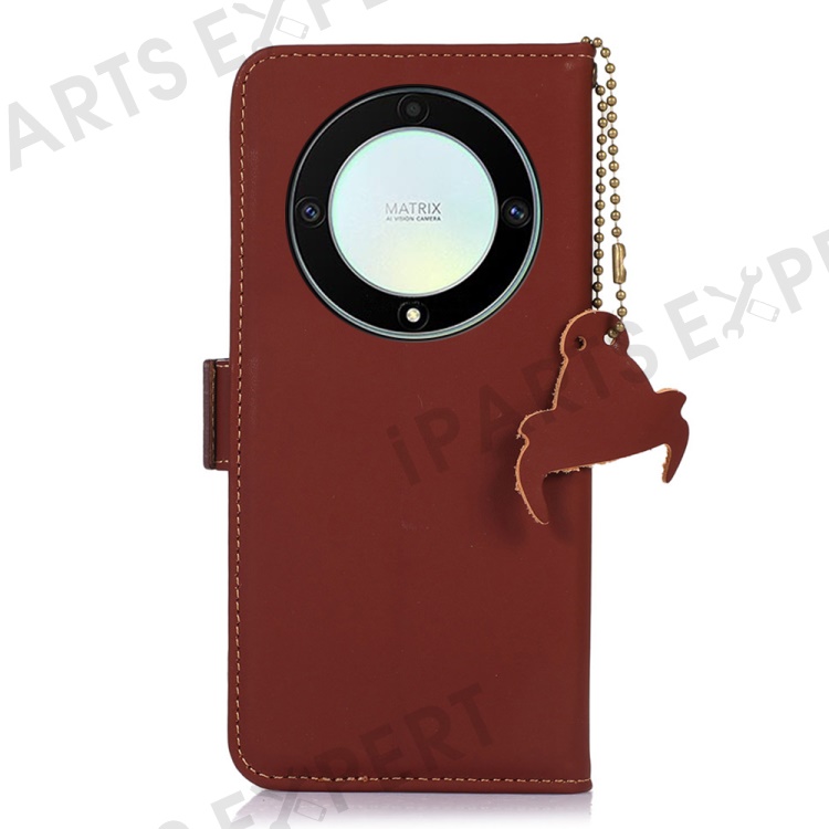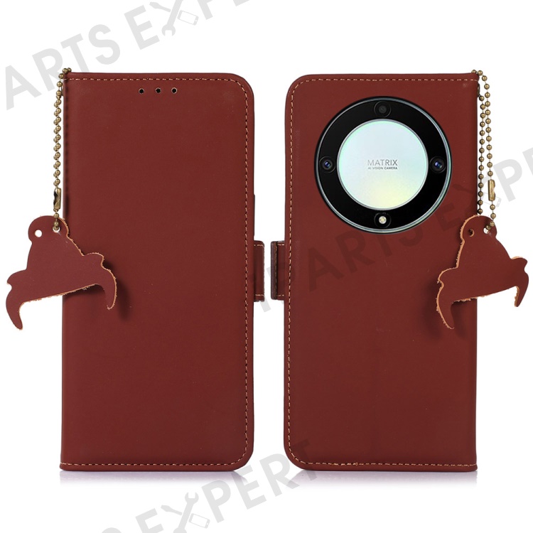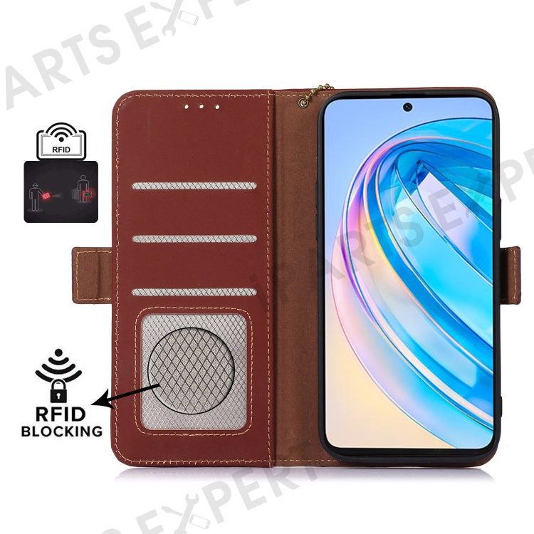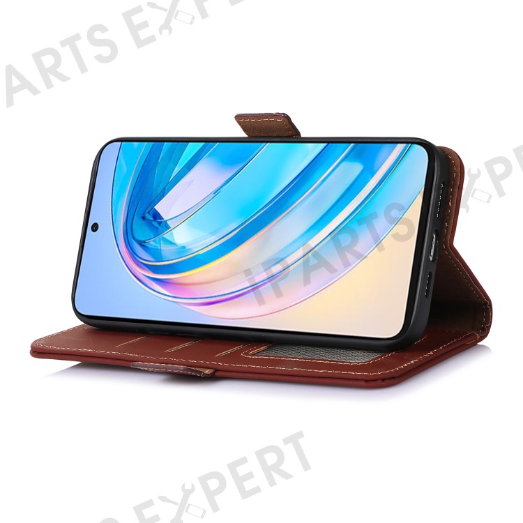 Shockproof Phone Case For Honor X40 5G / X9a 5G / Magic5 Lite 5G Genuine Cow Leather Stand RFID Blocking Phone Flip Wallet Cover - Coffee
