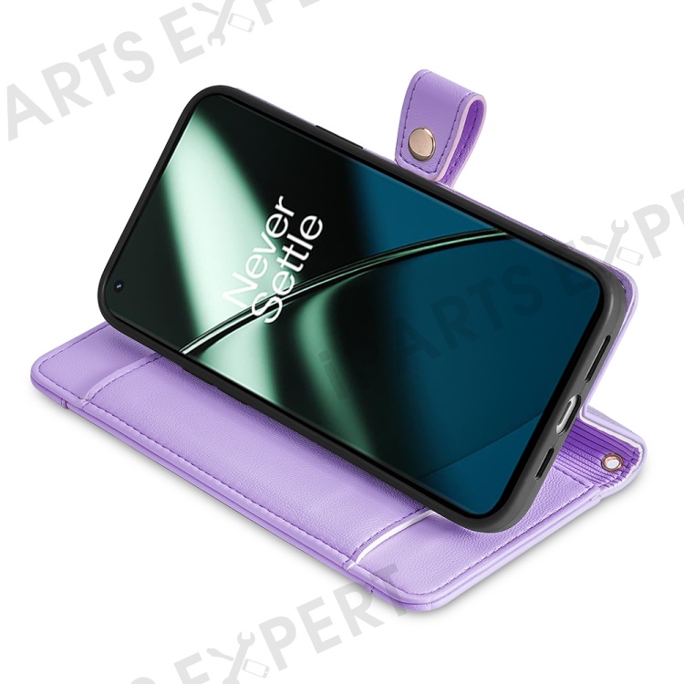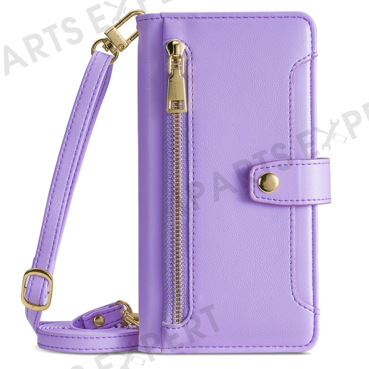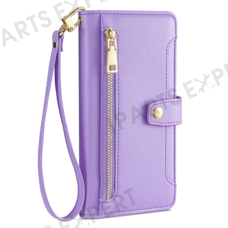 Shockproof Phone Case for OnePlus 11 5G, Zipper Pocket Card Slots Flip Leather Phone Cover with Straps - Purple