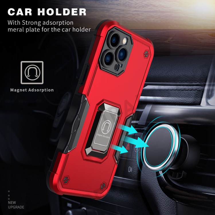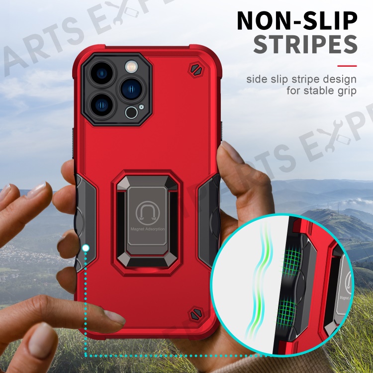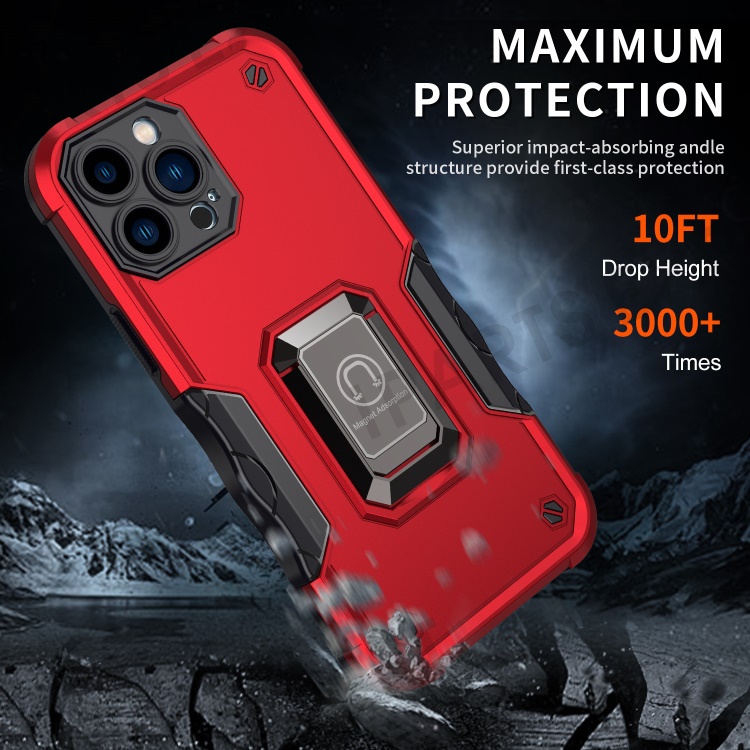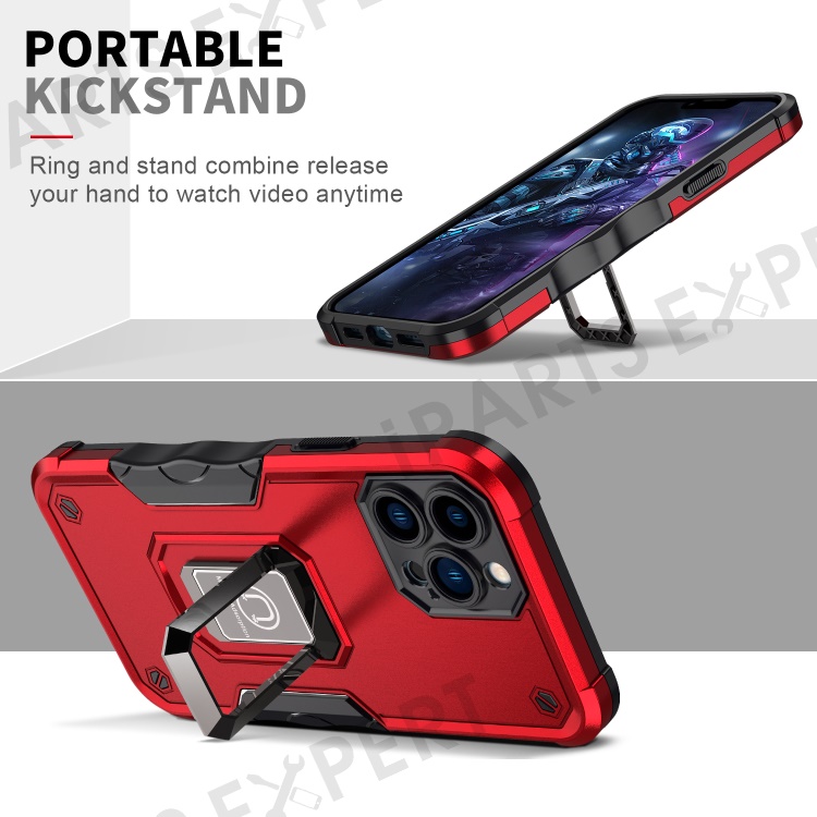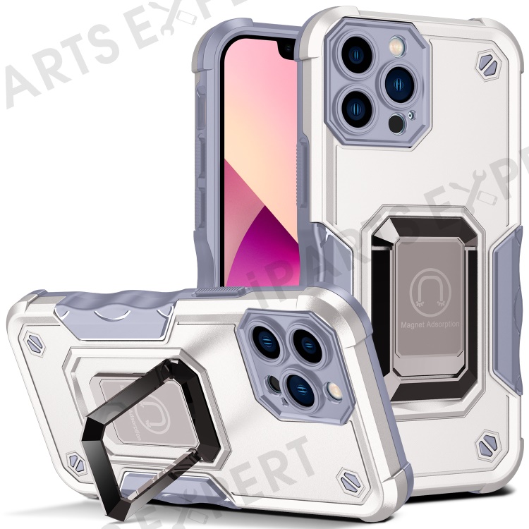 Shockproof Ring Kickstand Hybrid Hard PC Soft TPU Protective Case for iPhone 13 Pro Max 6.7 inch - White