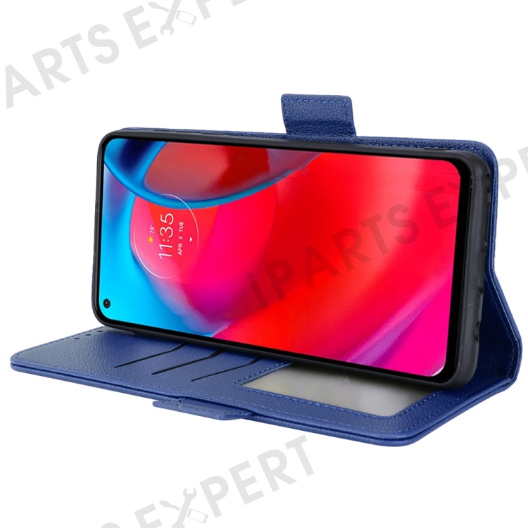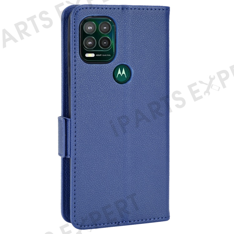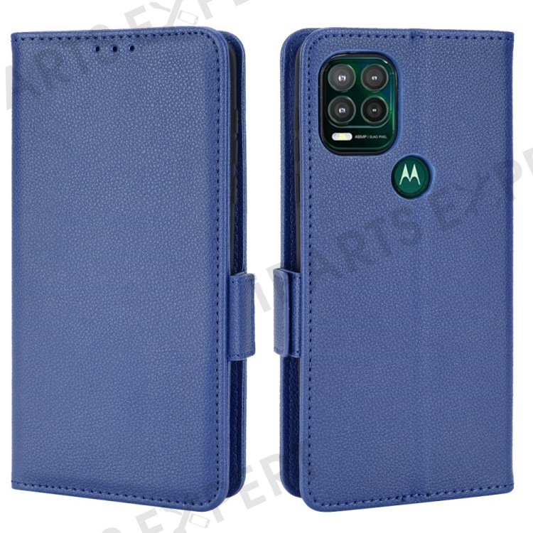 Side Buckle Litchi Texture Leather Phone Case for Motorola Moto G Stylus 5G (2021), Fingerprint-Free Wallet Stand Design PU Leather Protective Case - Dark Blue