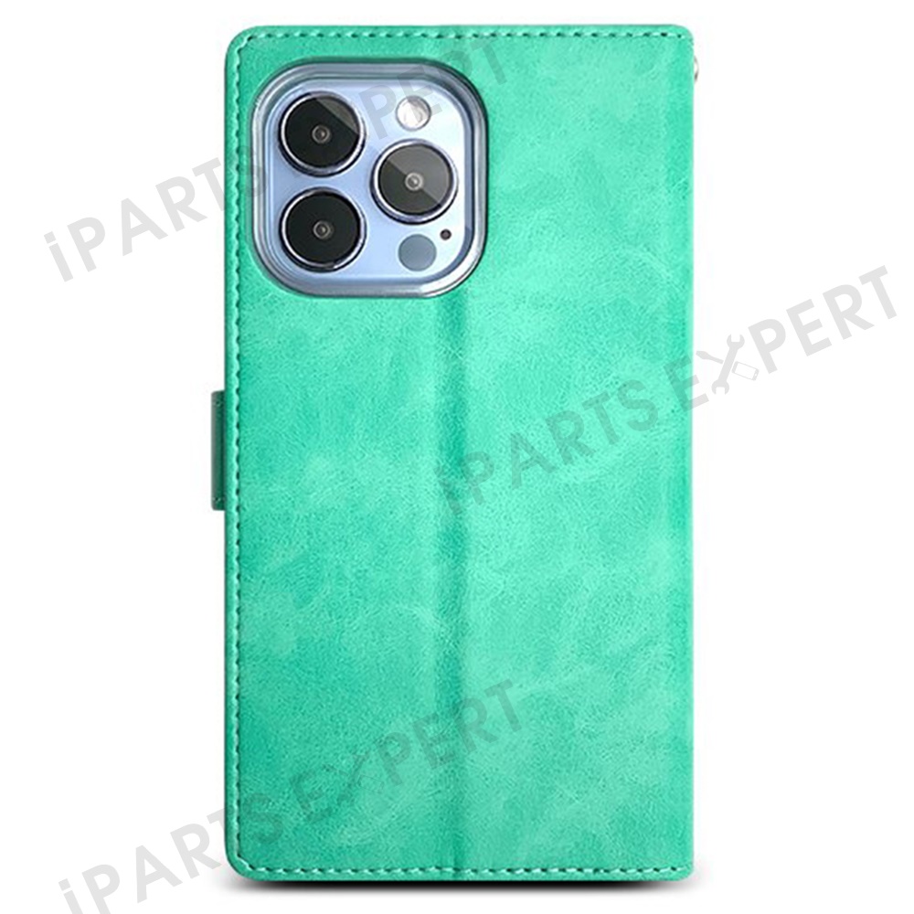 SIMPLY ROAR For iPhone 15 Pro Leather Case Wallet Flip Stand Phone Cover - Light Green