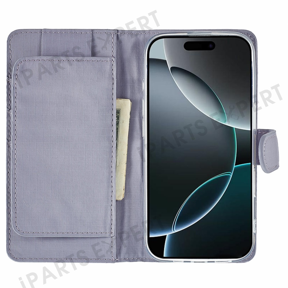 SIMPLY ROAR For iPhone 16 Pro Case Retro Texture Leather Phone Cover with Card Holder Wallet - Purple