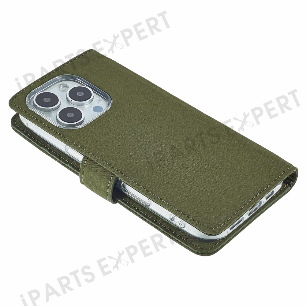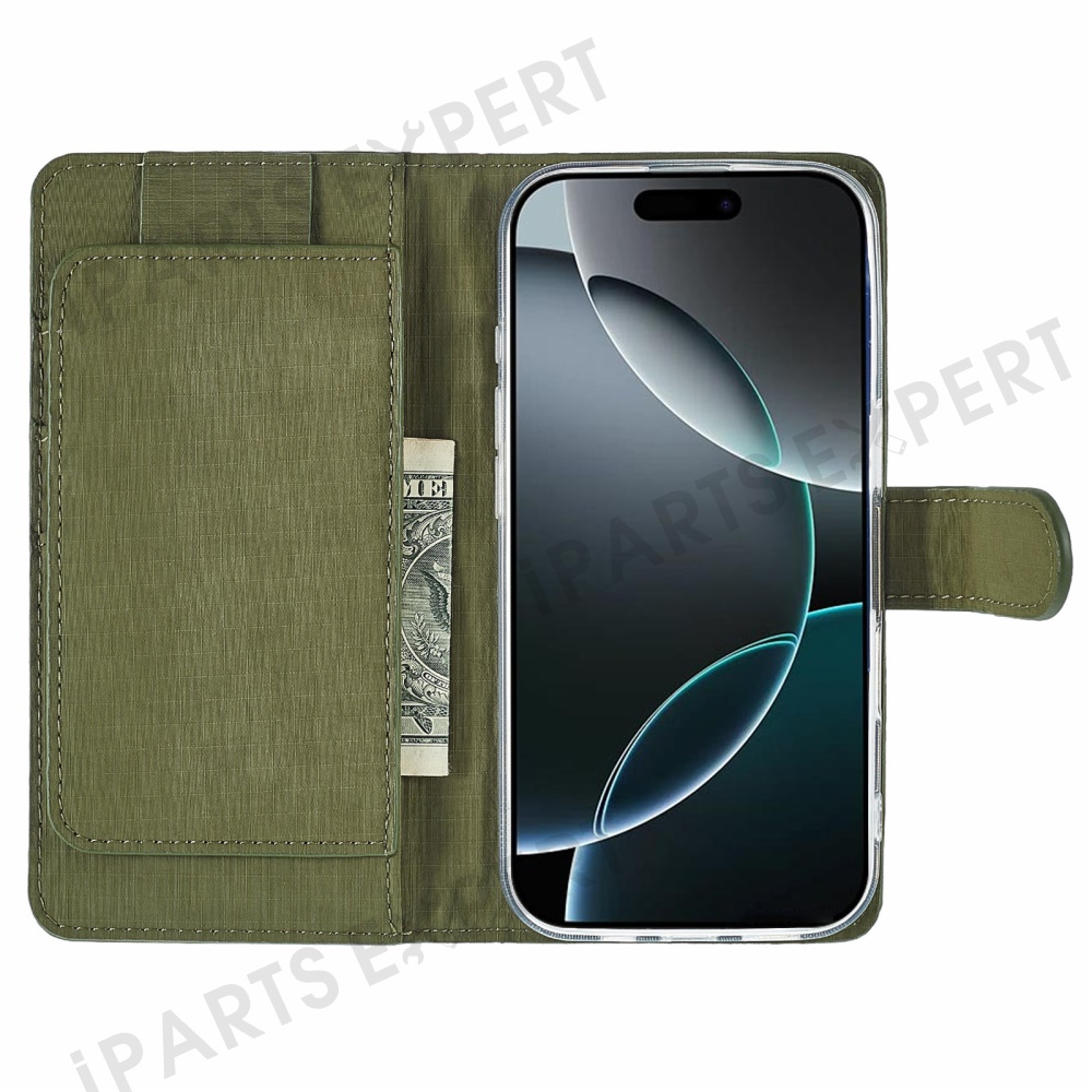 SIMPLY ROAR For iPhone 16 Pro Max Case Retro Texture Leather Phone Cover with Card Holder Wallet - Blackish Green