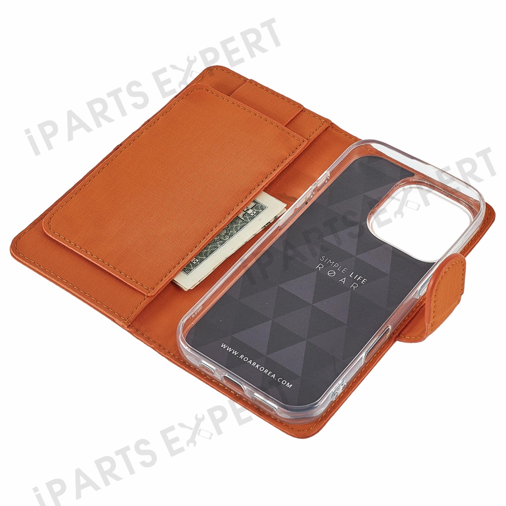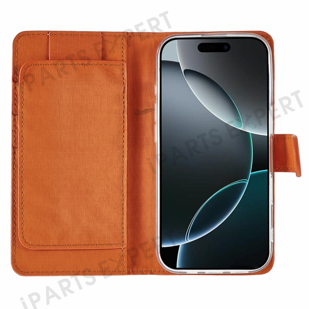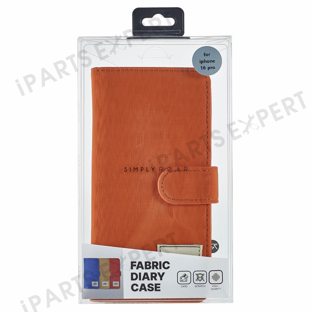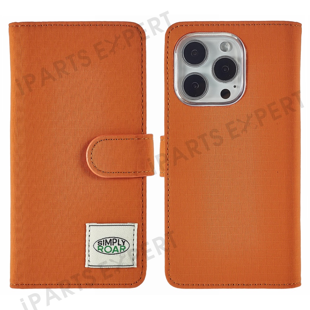 SIMPLY ROAR For iPhone 16 Pro Max Case Retro Texture Leather Phone Cover with Card Holder Wallet - Orange
