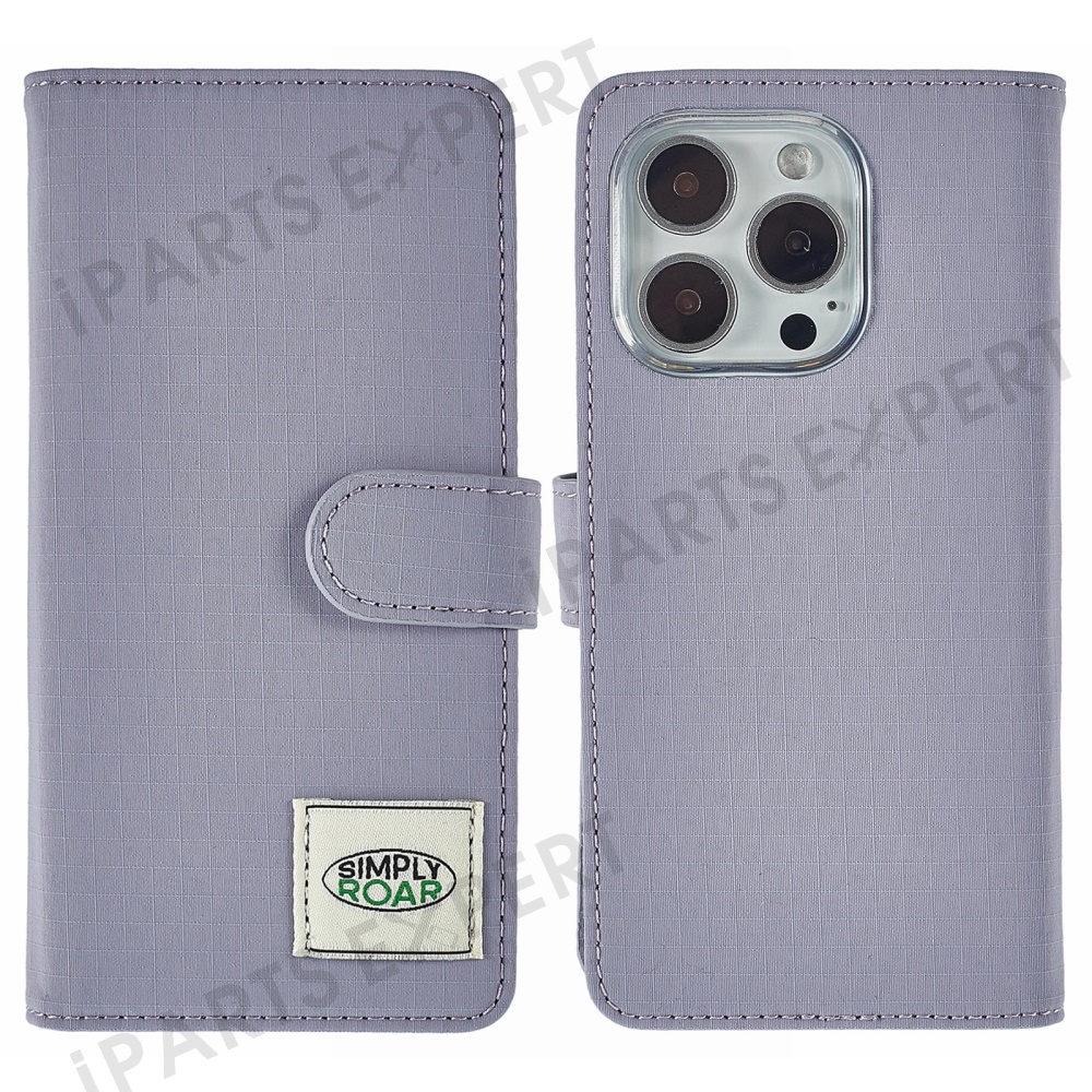 SIMPLY ROAR For iPhone 16 Pro Max Case Retro Texture Leather Phone Cover with Card Holder Wallet - Purple