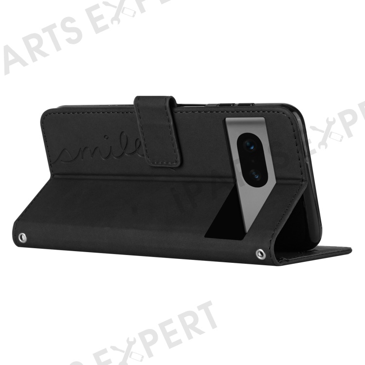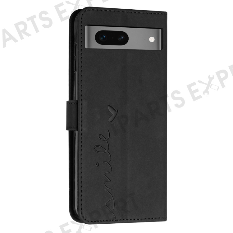 Skin-touch Feeling Case for Google Pixel 7 5G, Bump Proof Heart Shape Imprinted Wallet Stand PU Leather Phone Cover with Shoulder Strap - Black