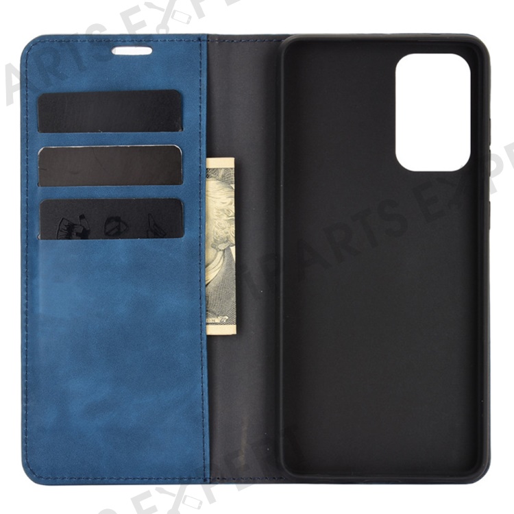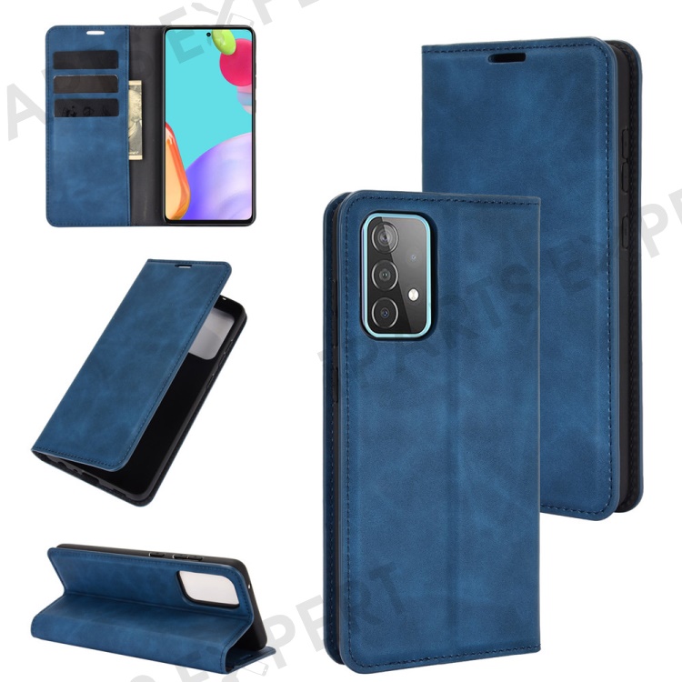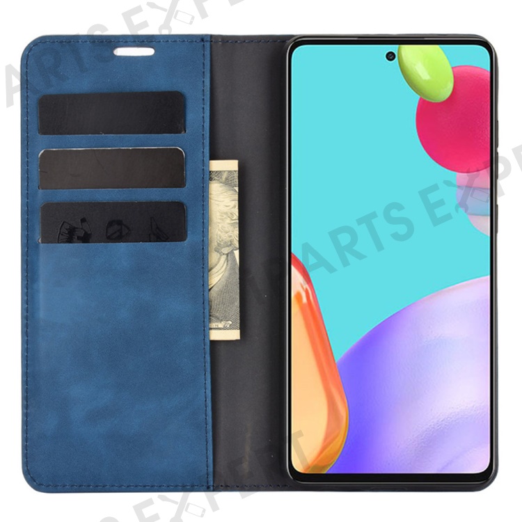 Skin-Touch Feelingwallet Stand Design Leather Cover for Samsung Galaxy A52 4G / 5G / A52s 5G Auto-Absorbed Phone Case - Blue