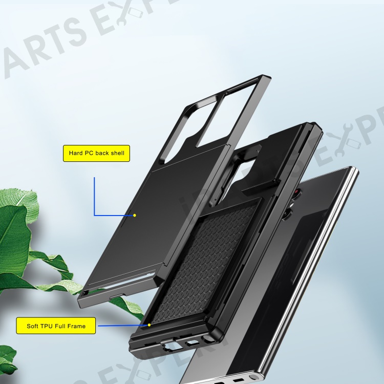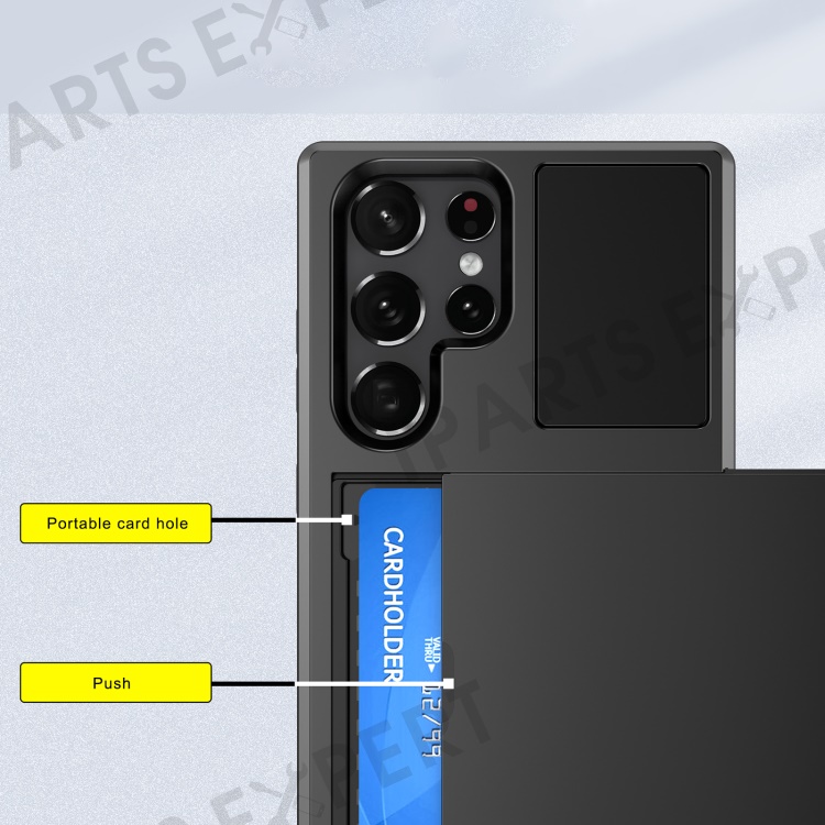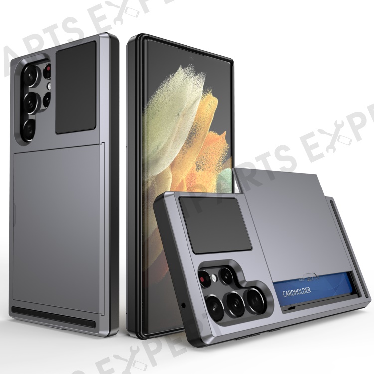 Sliding Card Holder Phone Case for Samsung Galaxy S23 Ultra, Anti-drop PC + TPU Protective Cover - Grey