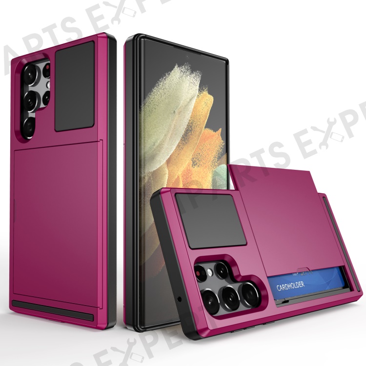 Sliding Card Holder Phone Case for Samsung Galaxy S23 Ultra, Anti-drop PC + TPU Protective Cover - Rose