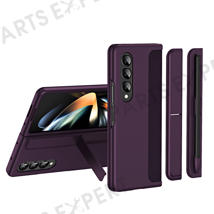 Slim Phone Case for Samsung Galaxy Z Fold4 5G Shockproof Had PC Kickstand Case with Pencil Holder - Dark Purple
