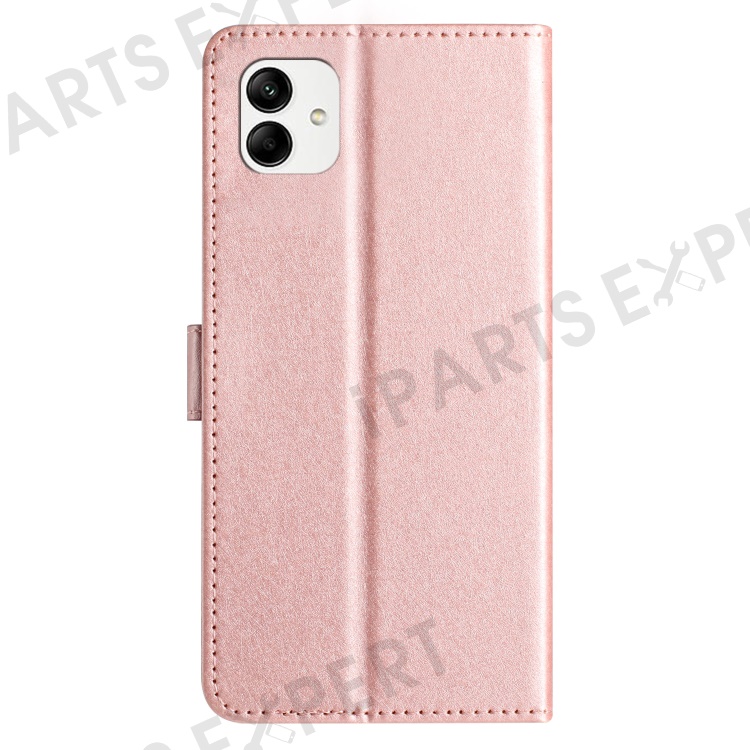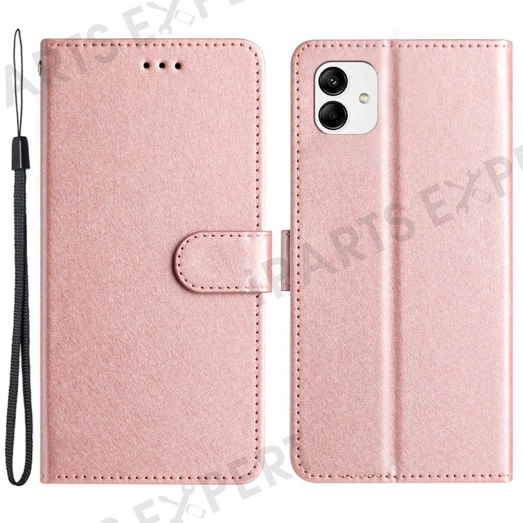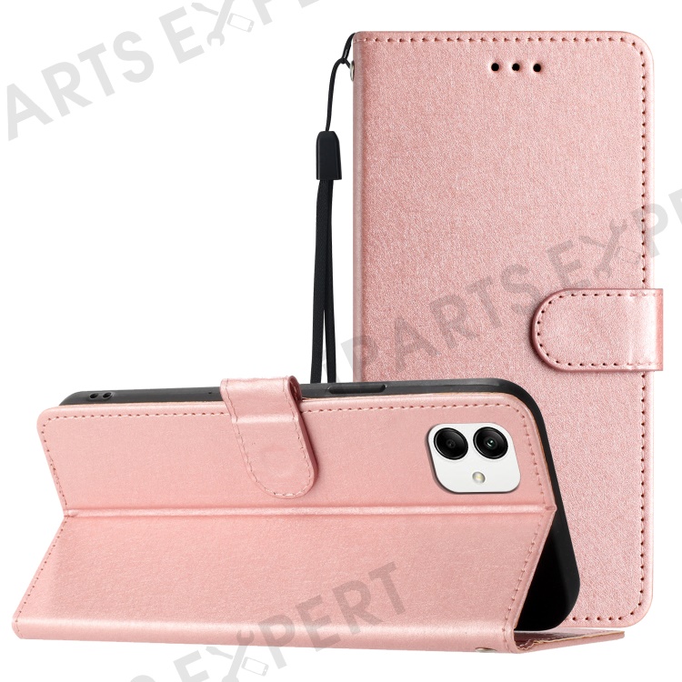 Smart Phone Stand Case for Samsung Galaxy A04e 4G / F04 4G / M04 4G , Silk Texture PU Leather Wallet Shell with Hand Strap - Rose Gold