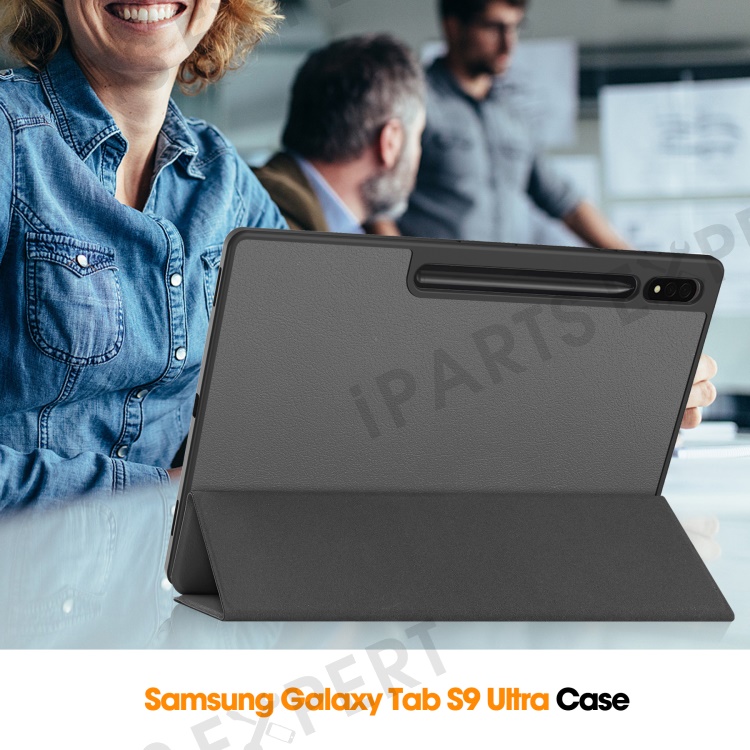 Smart Tablet Case for Samsung Galaxy Tab S9 Ultra , PU Leather Tri-fold Stand Cover with Pen Slot - Grey