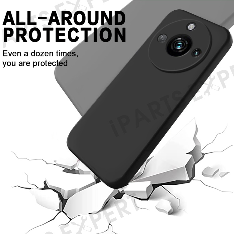 Smartphone Case for Realme 11 Pro+ 5G / Realme 11 Pro 5G , Liquid Silicone Soft Lining Phone Cover with Strap - Black