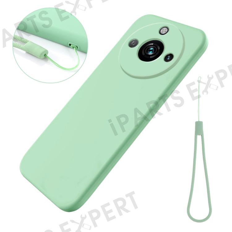 Smartphone Case for Realme 11 Pro+ 5G / Realme 11 Pro 5G , Liquid Silicone Soft Lining Phone Cover with Strap - Green