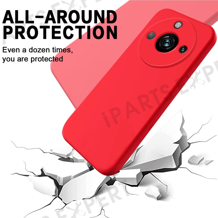 Smartphone Case for Realme 11 Pro+ 5G / Realme 11 Pro 5G , Liquid Silicone Soft Lining Phone Cover with Strap - Red