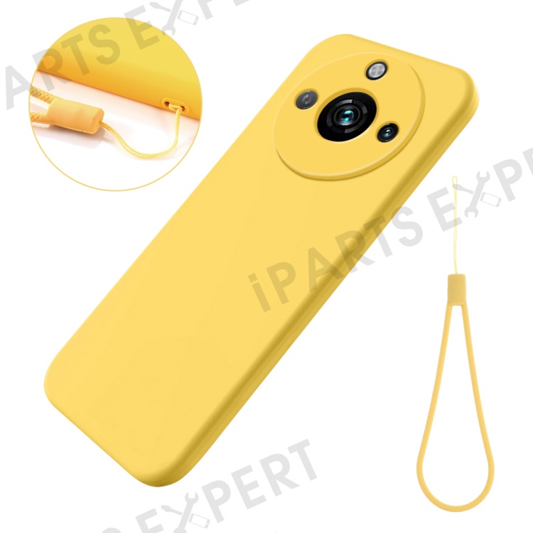 Smartphone Case for Realme 11 Pro+ 5G / Realme 11 Pro 5G , Liquid Silicone Soft Lining Phone Cover with Strap - Yellow
