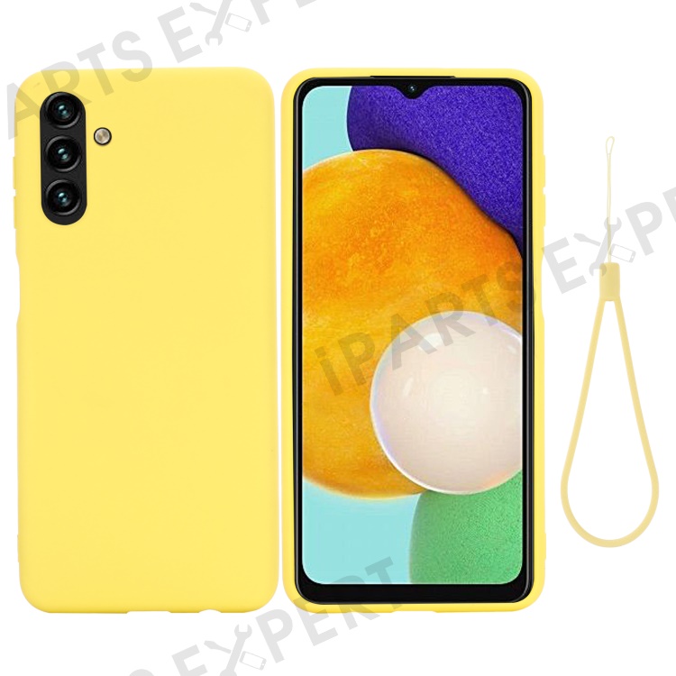 Soft Liquid Silicone Anti-drop Phone Case Cover with Wrist Strap for Samsung Galaxy A13 5G / A04s 4G (164.7mm) - Yellow