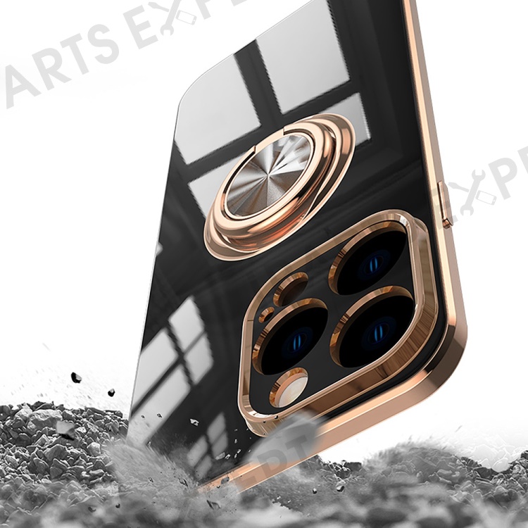 Soft TPU Phone Case Kickstand For iPhone 14 Pro 6.1 inch, Ring Holder Anti-drop 9D Electroplating Precise Cutout Phone Back Cover - Dark Green