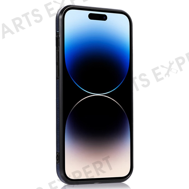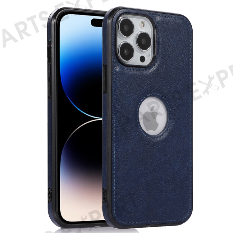 Soft TPU+PU Phone Case for iPhone 14 Pro Max Shockproof Slim Case Logo View Phone Cover - Blue