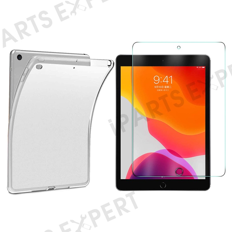 Soft TPU Transparent Flexible Cover with Tempered Glass Screen Protector for iPad 10.2 (2021) / (2020) / (2019)