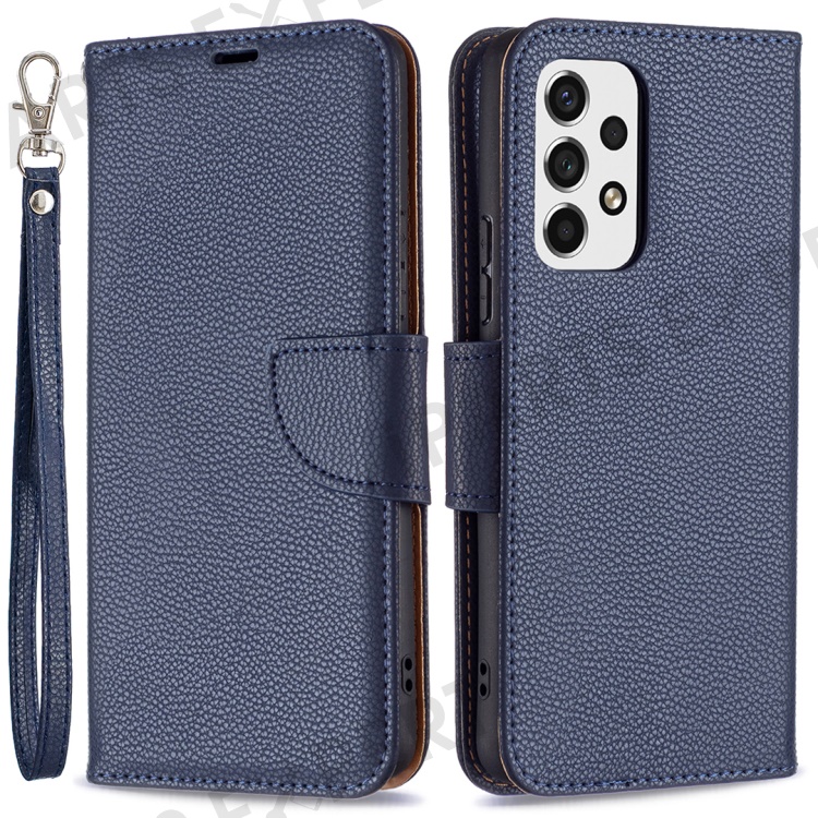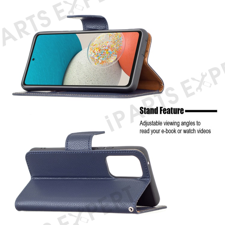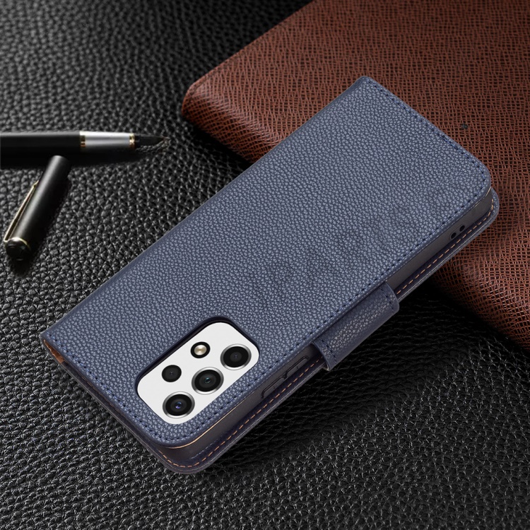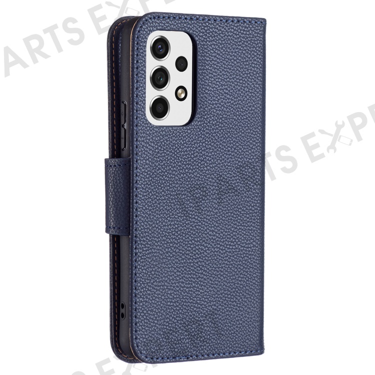 Solid Color Litchi Texture Shockproof Folio Flip Magnetic Closure Leather Case Cover with Wallet Stand for Samsung Galaxy A53 5G - Dark Blue