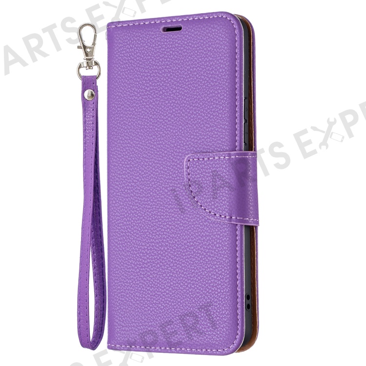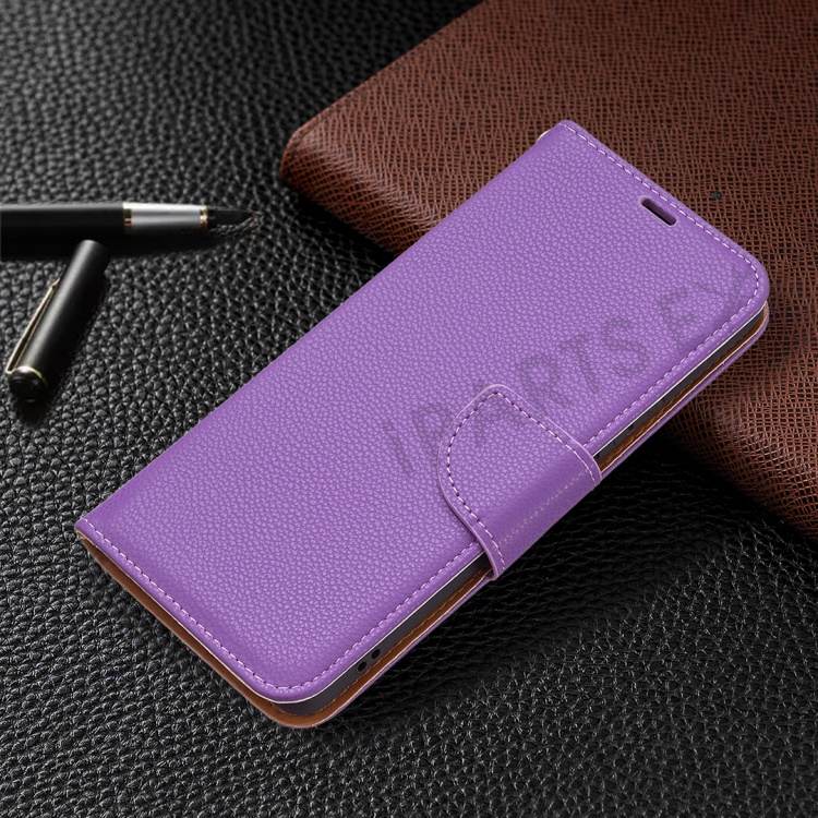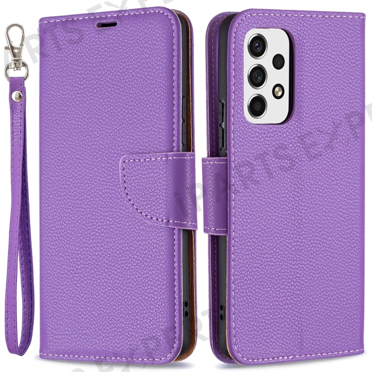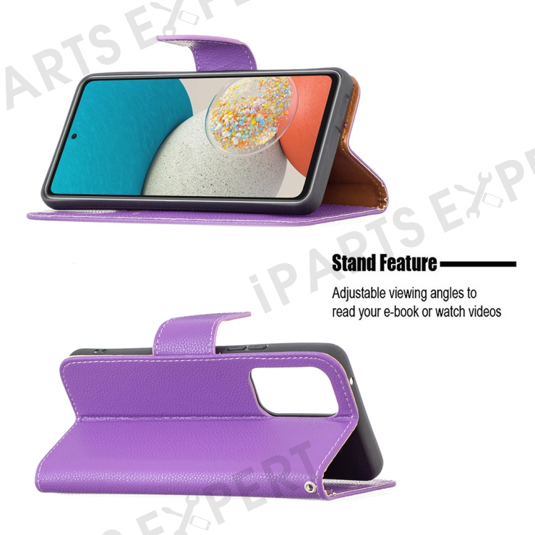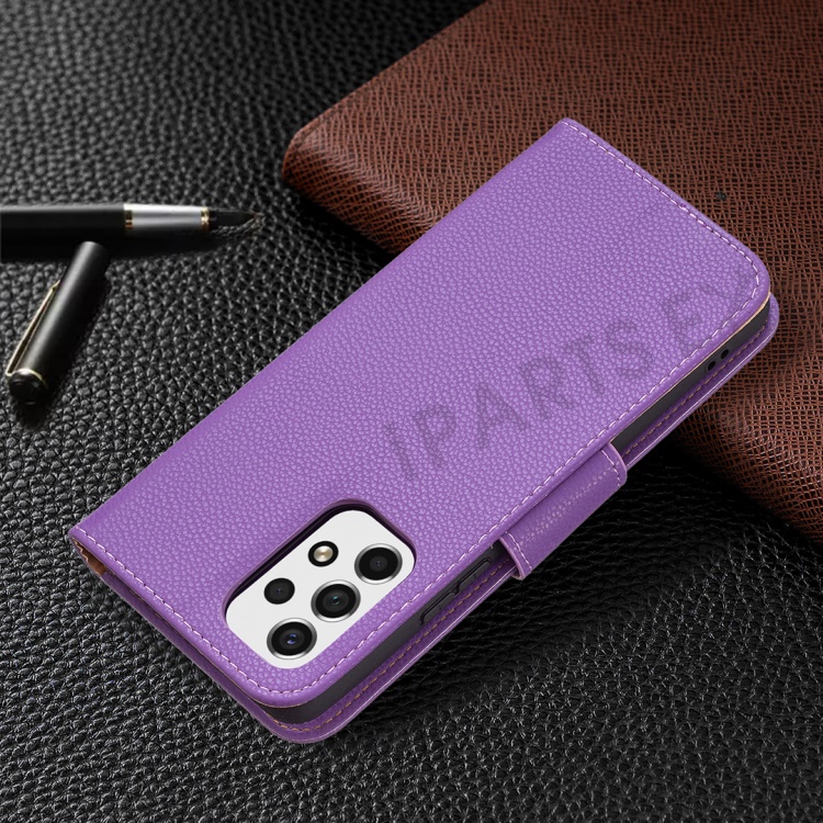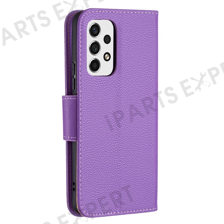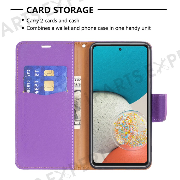 Solid Color Litchi Texture Shockproof Folio Flip Magnetic Closure Leather Case Cover with Wallet Stand for Samsung Galaxy A53 5G - Purple