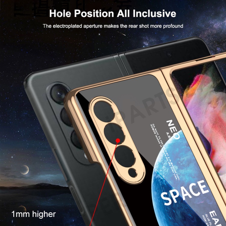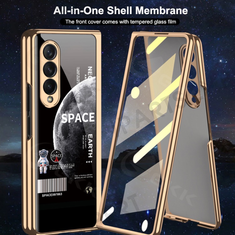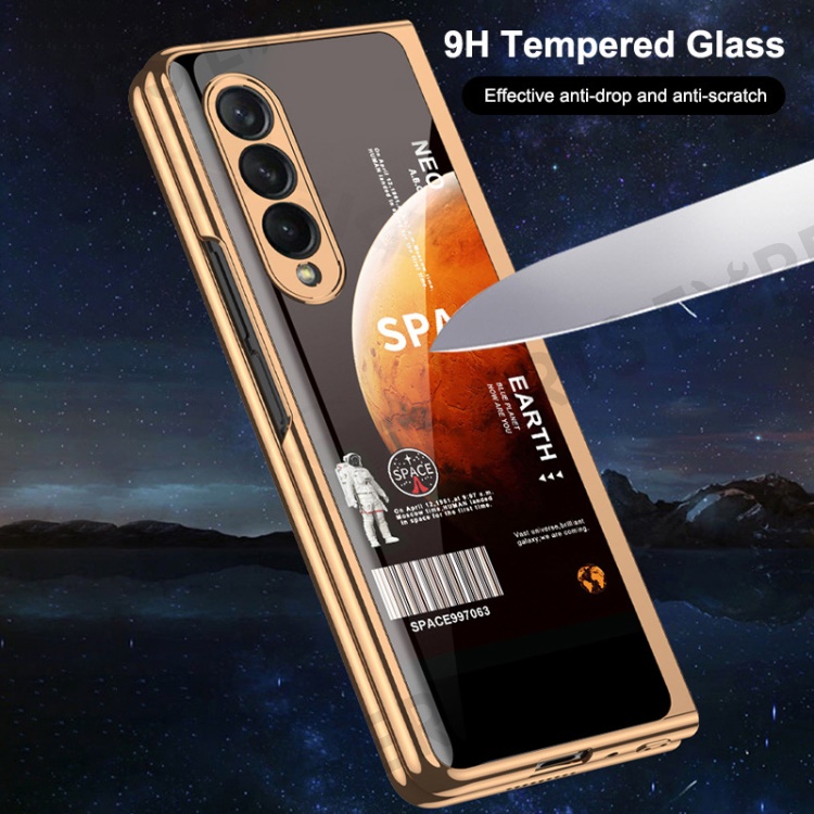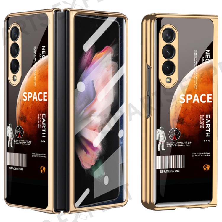 Space Pattern Printing Anti-Scratch PC All-in-One Case with 9H Tempered Glass Screen Protector for Samsung Galaxy Z Fold3 5G - Orange
