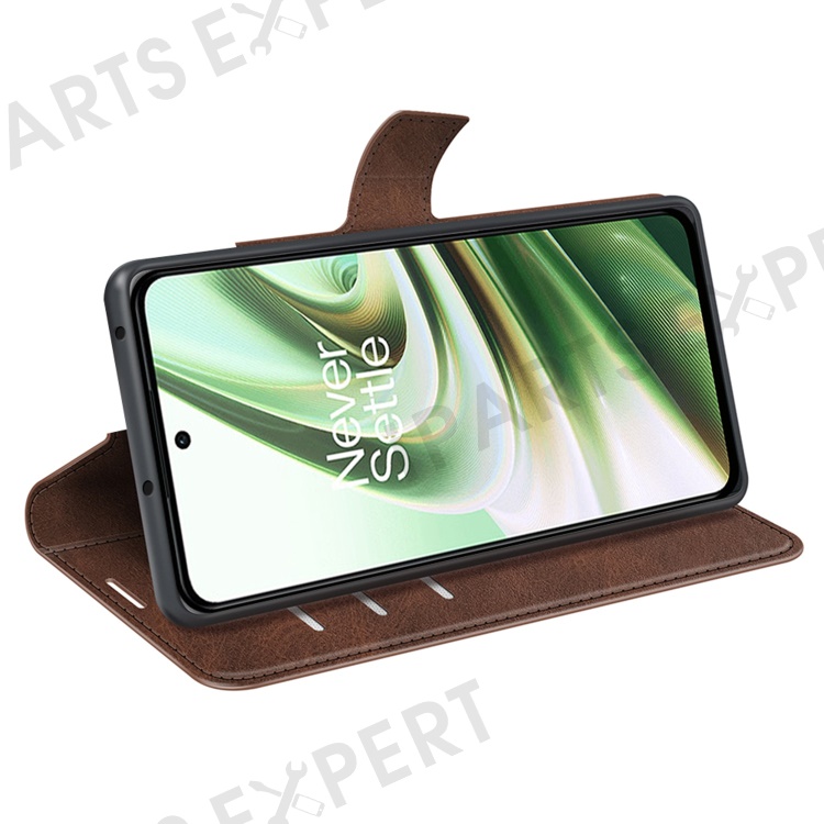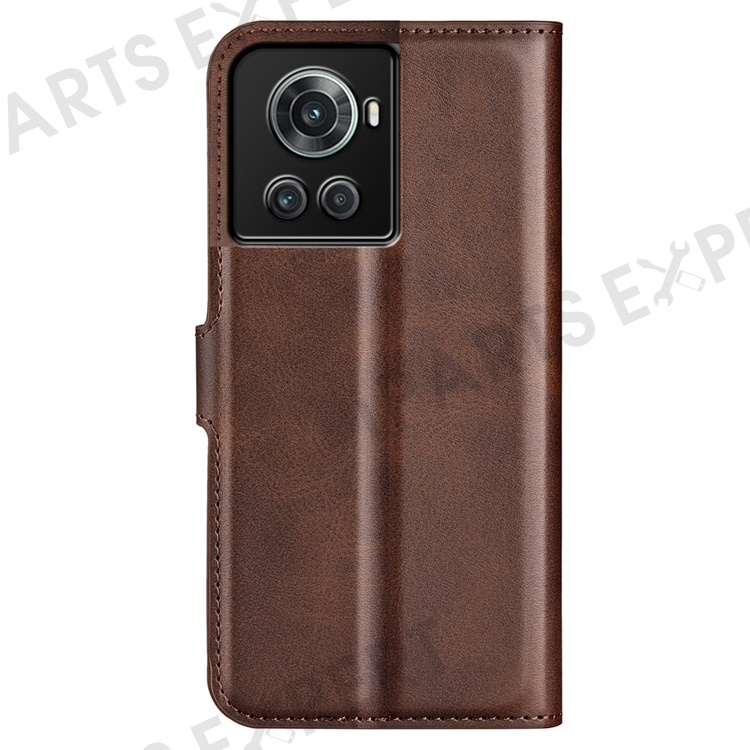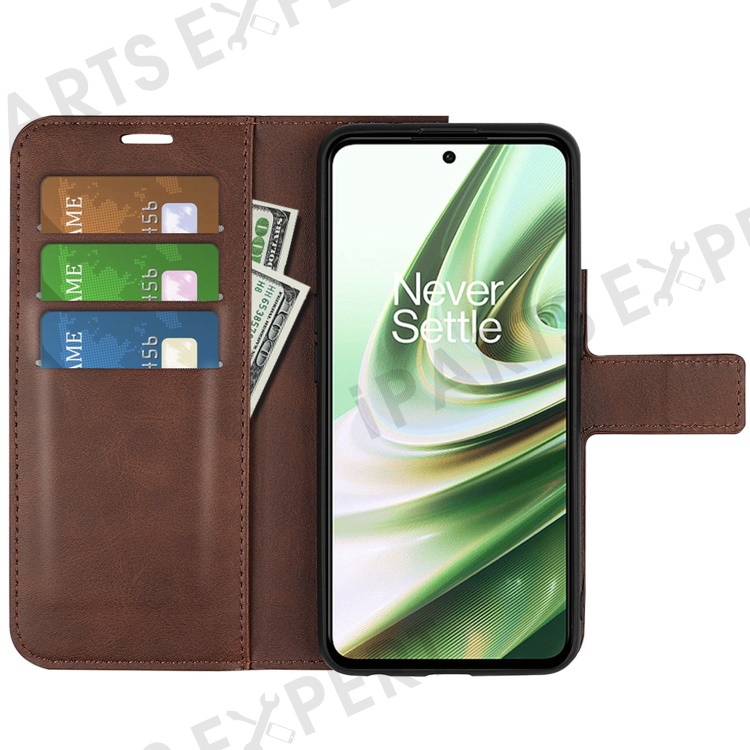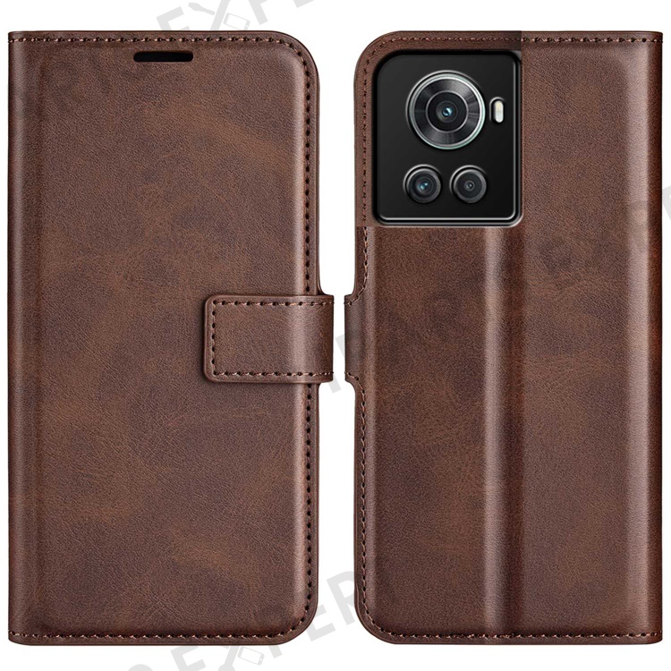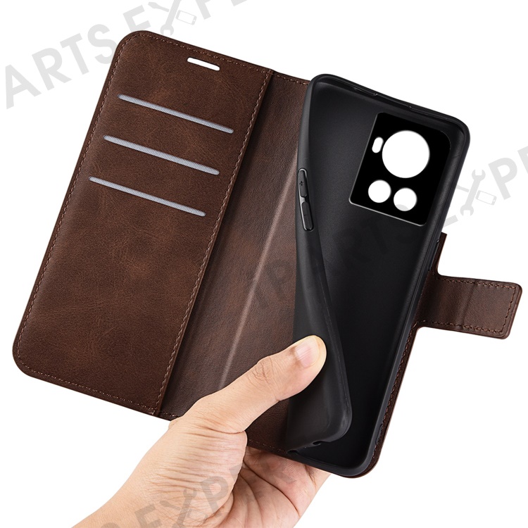 Square Magnetic Clasp Folio Flip Mobile Phone Leather Case for OnePlus Ace 5G/10R 5G, Full Coverage Anti-drop Wallet Design Stand Phone Cover - Brown