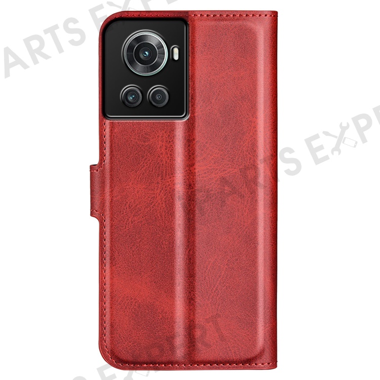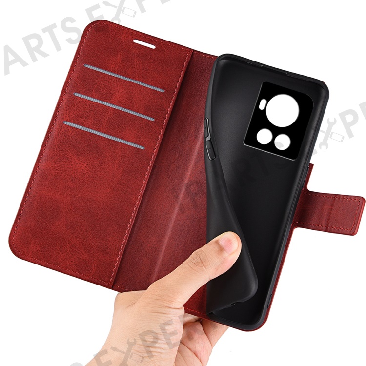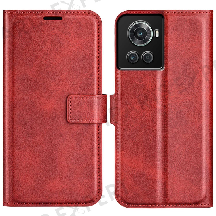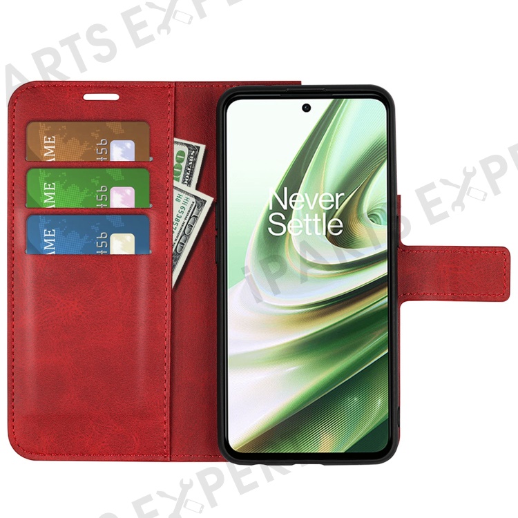 Square Magnetic Clasp Folio Flip Mobile Phone Leather Case for OnePlus Ace 5G/10R 5G, Full Coverage Anti-drop Wallet Design Stand Phone Cover - Red