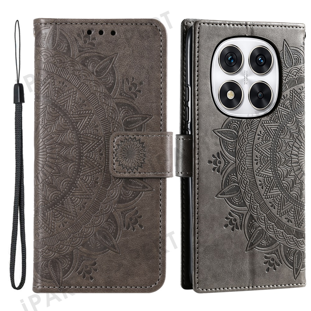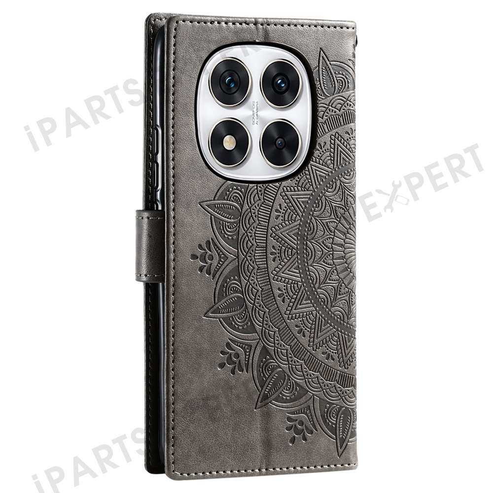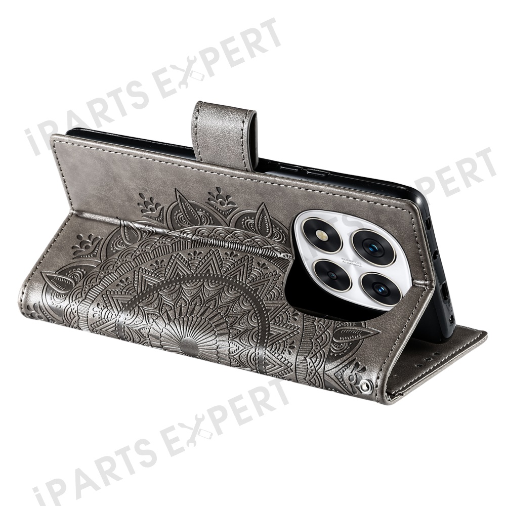 Stand Case for Xiaomi Redmi Note Note 14 Pro+ 5G / 14 Pro 5G / Poco X7 5G Imprinted Totem PU Leather Wallet Phone Cover - Grey