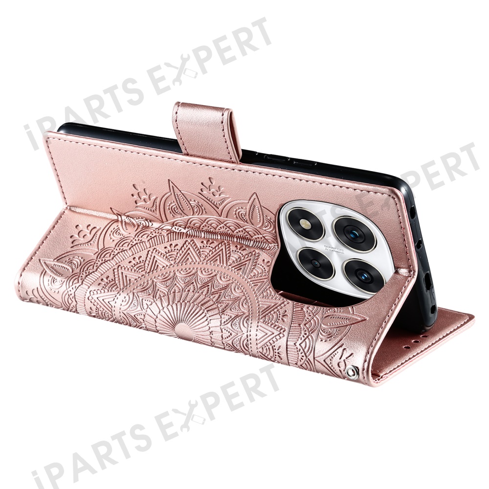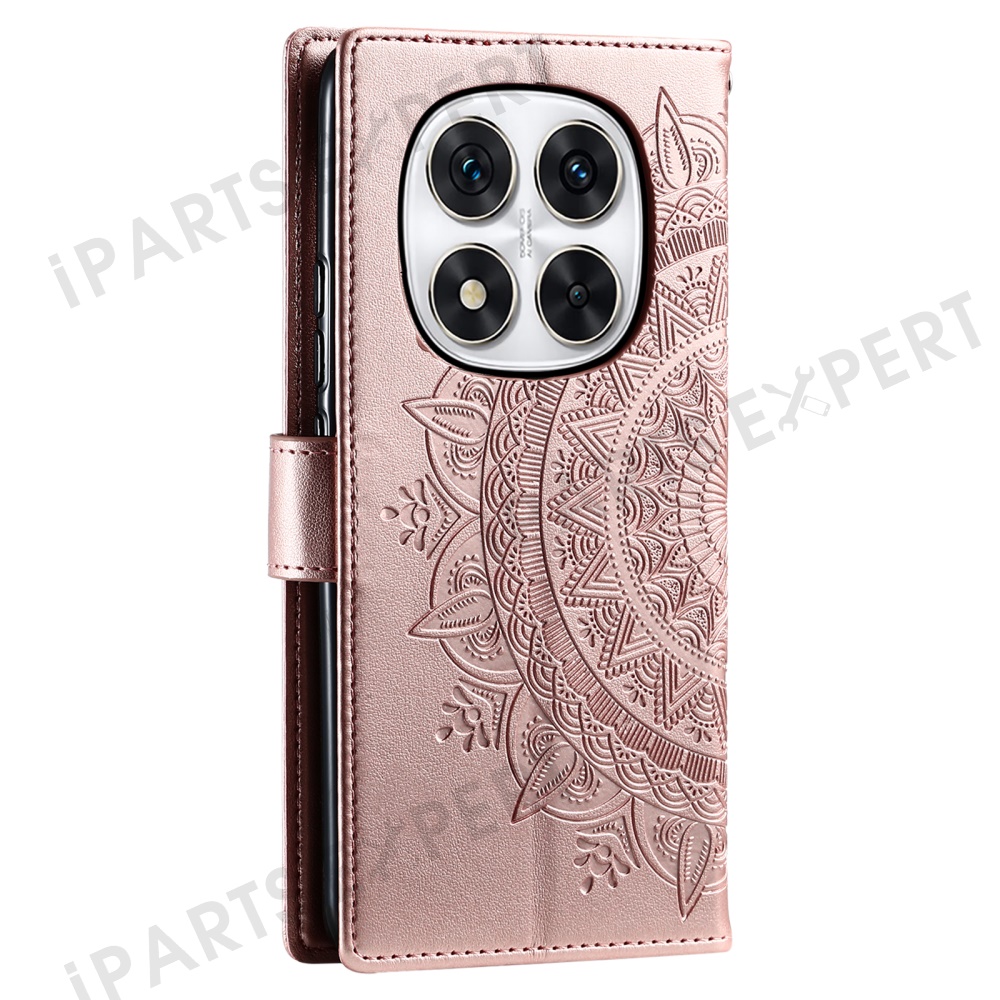 Stand Case for Xiaomi Redmi Note Note 14 Pro+ 5G / 14 Pro 5G / Poco X7 5G Imprinted Totem PU Leather Wallet Phone Cover - Rose Gold