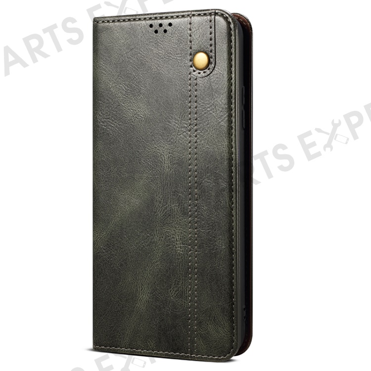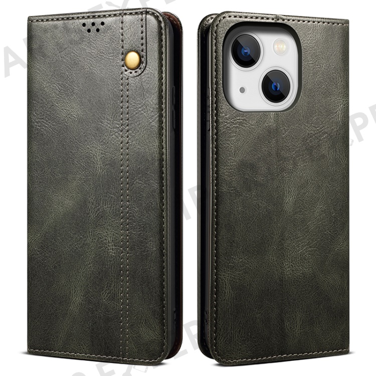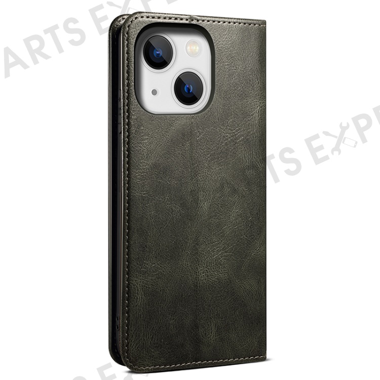Stand Phone Cover For iPhone 15 Plus , Waxy Crazy Horse Texture Wallet PU Leather Shell Phone Case - Green