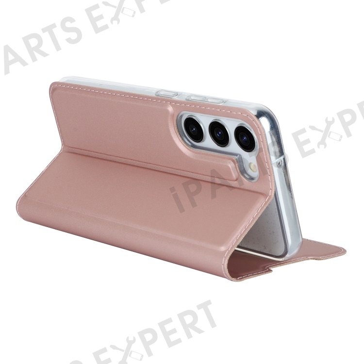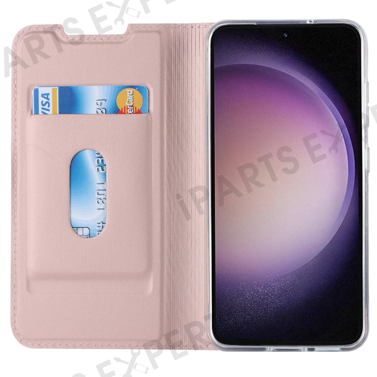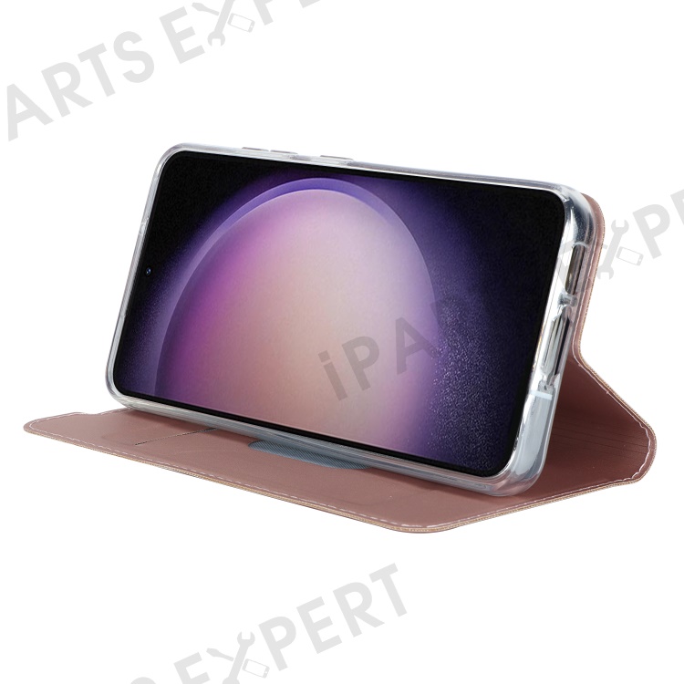 Stand Phone Cover for Samsung Galaxy S23 , PU Leather Card Holder Magnetic Folio Case - Rose Gold