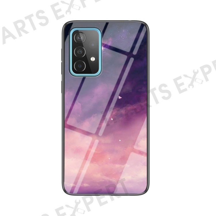 Starry Sky Pattern Printing Shell Glass + PC + TPU Hybrid Case for Samsung Galaxy A52 4G/5G / A52s 5G - Purple Sky