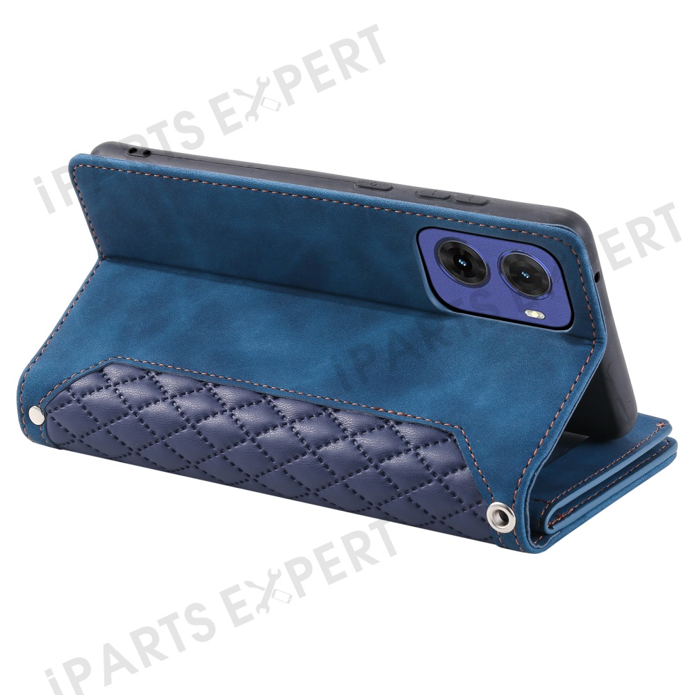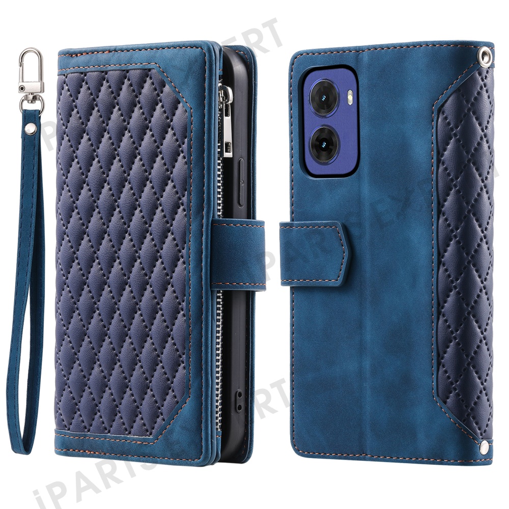 Style 005 For Motorola Moto G05 4G Wallet Case Rhombus Stitching Line PU Leather Phone Cover - Blue