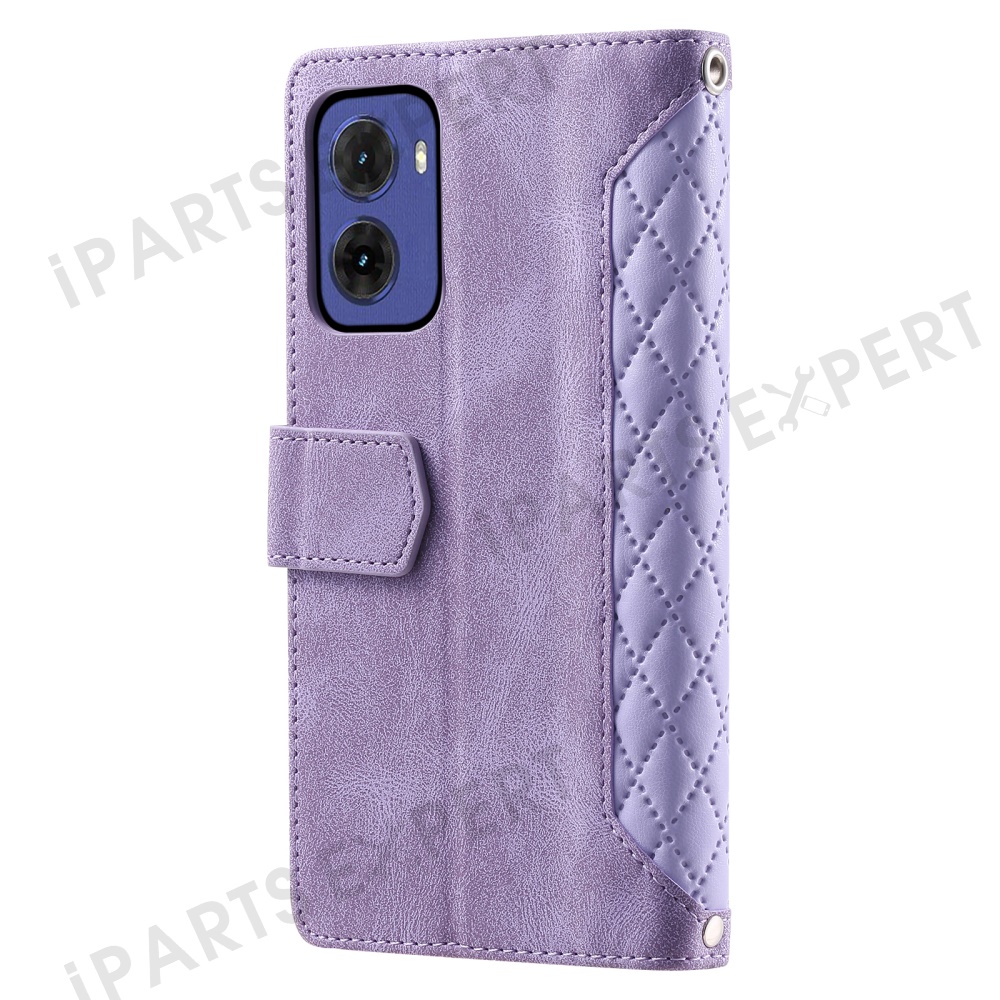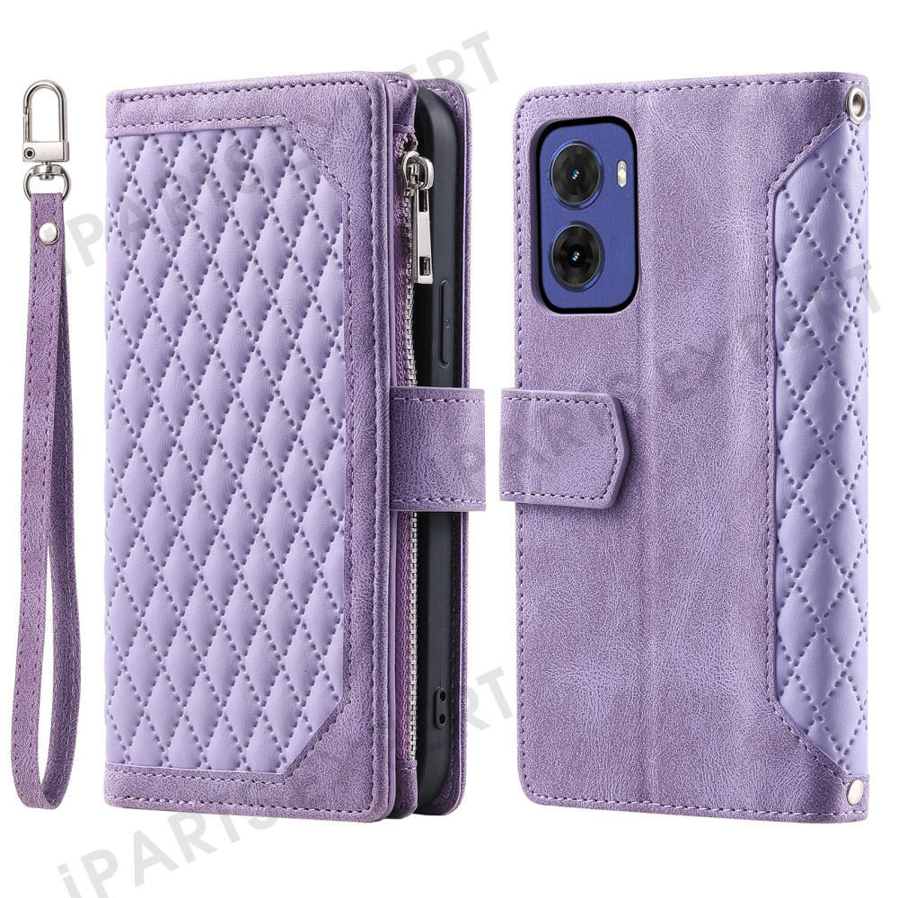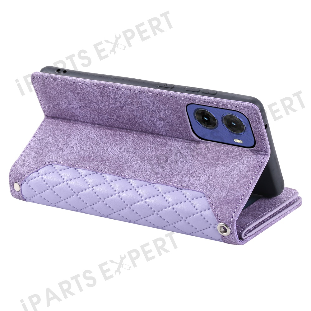 Style 005 For Motorola Moto G05 4G Wallet Case Rhombus Stitching Line PU Leather Phone Cover - Purple