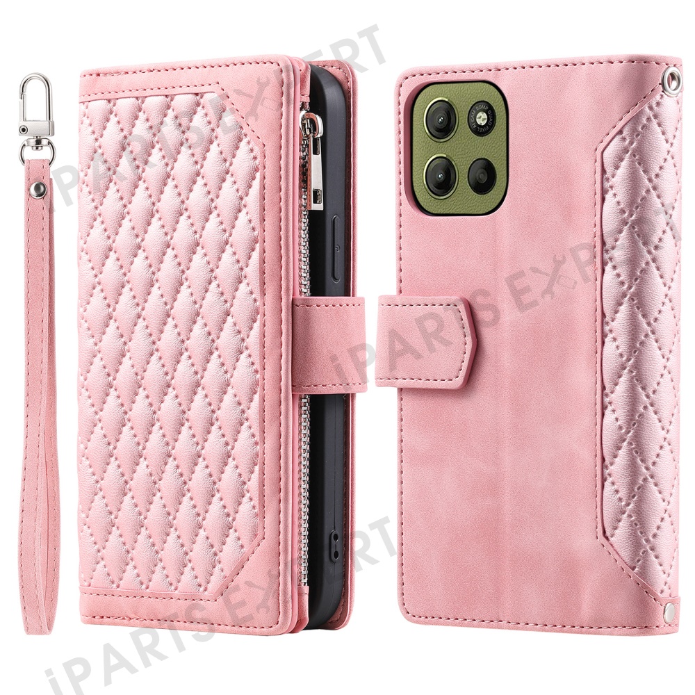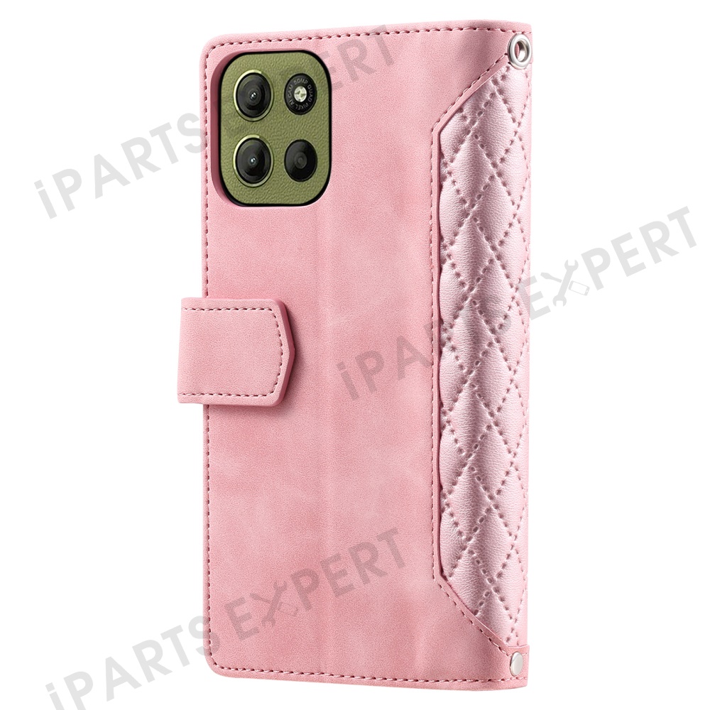 Style 005 For Motorola Moto G15 4G Wallet Case Rhombus Stitching Line PU Leather Phone Cover - Rose Gold
