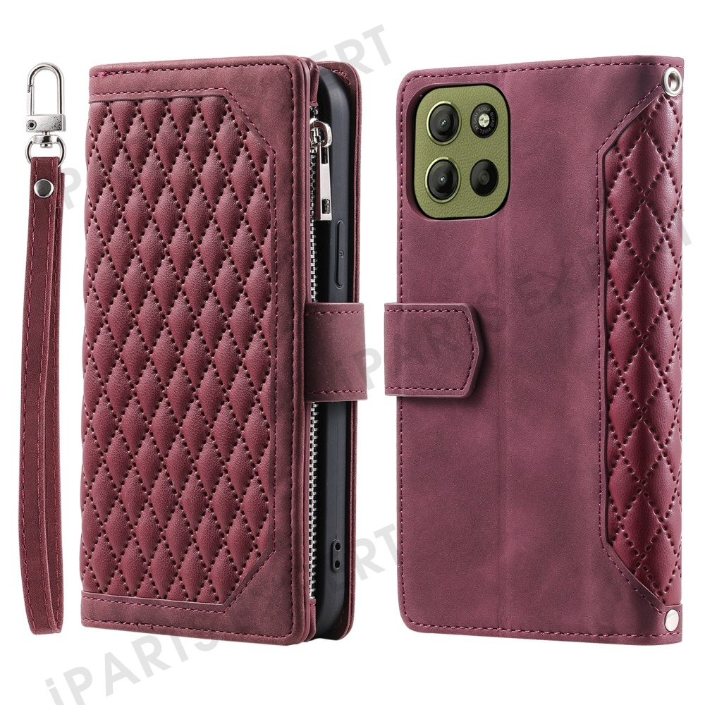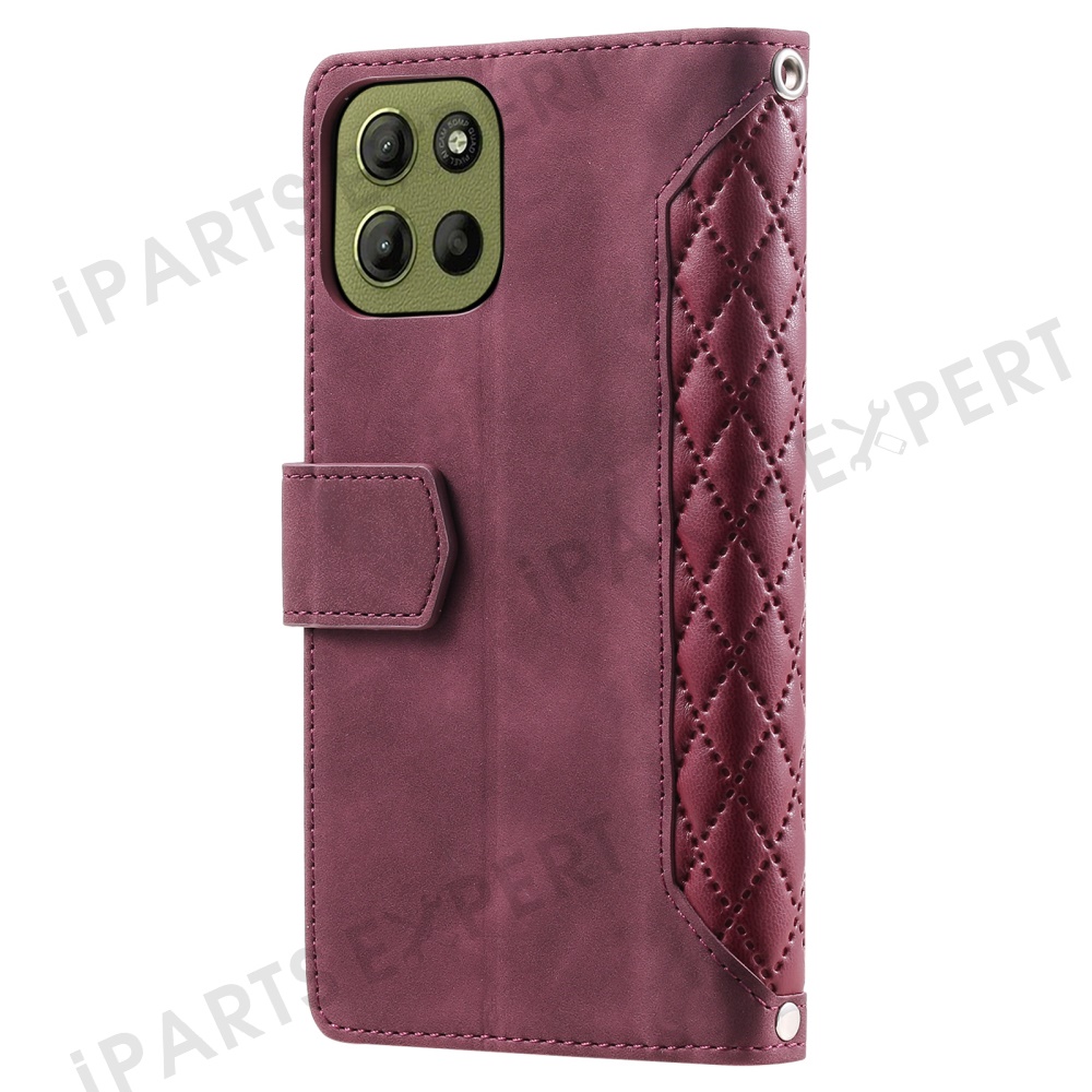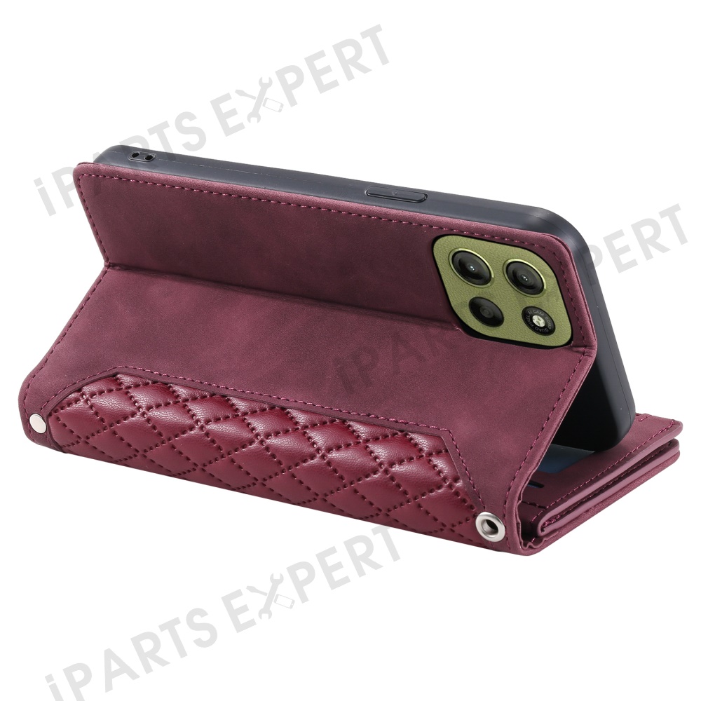 Style 005 For Motorola Moto G15 4G Wallet Case Rhombus Stitching Line PU Leather Phone Cover - Wine Red