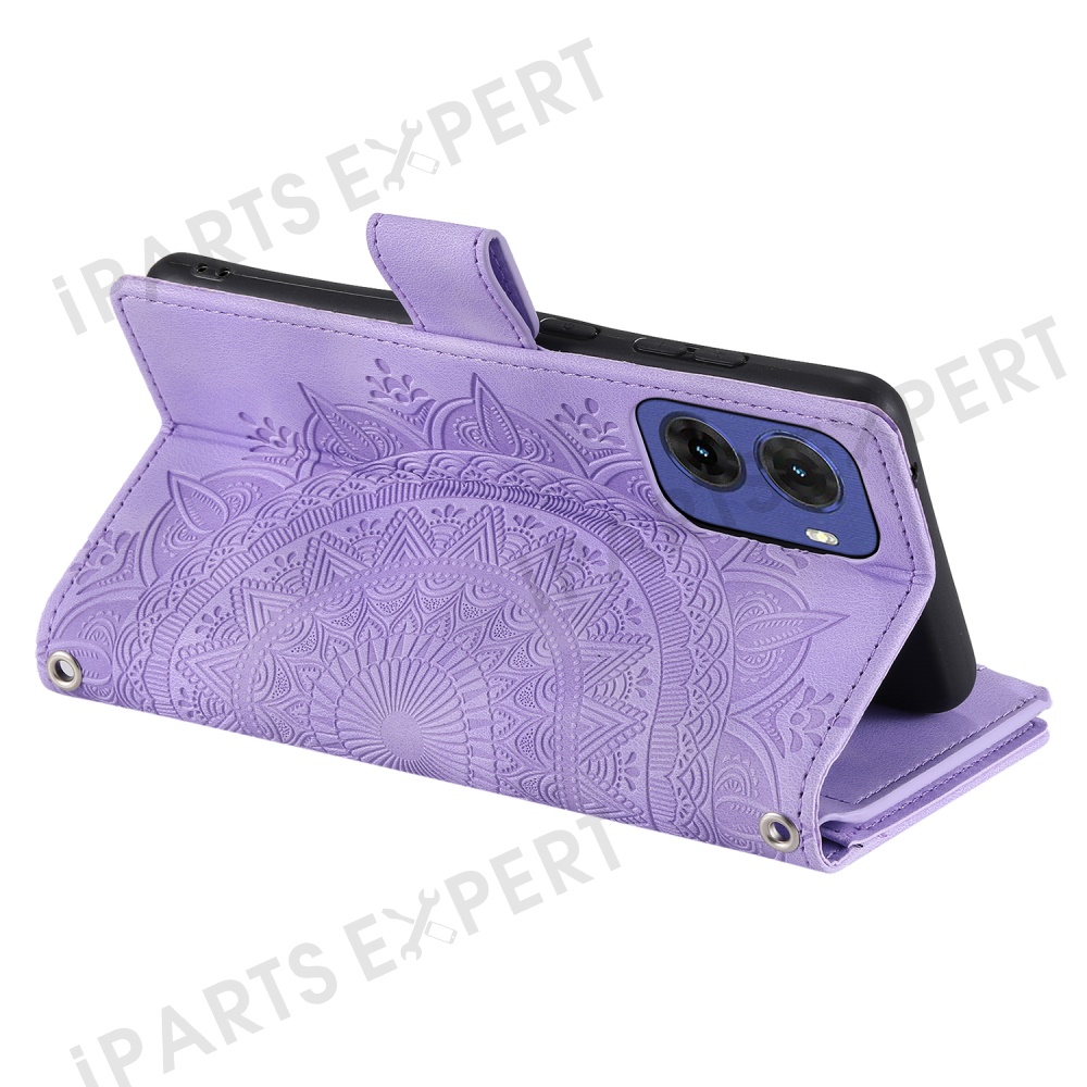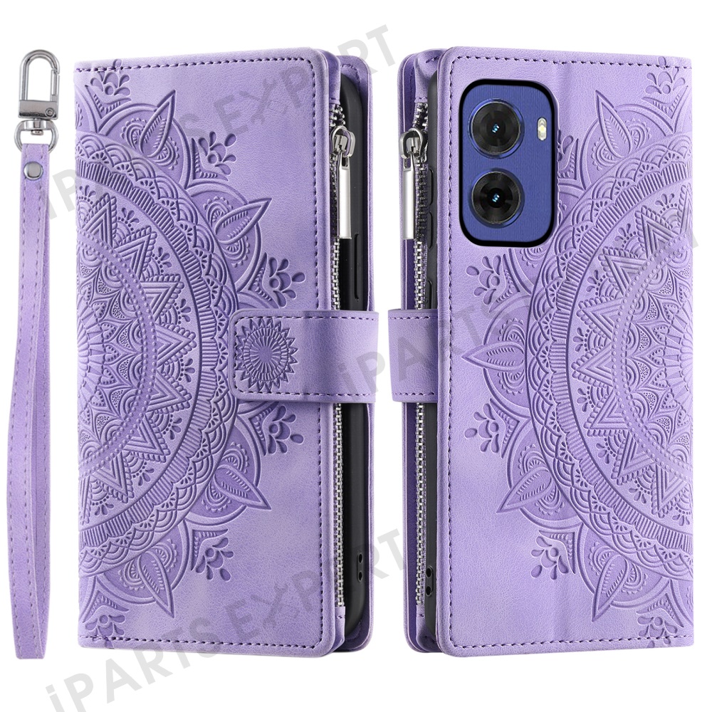Style 006 For Motorola Moto G05 4G Wallet Case PU Leather Phone Cover Mandala Flower Pattern - Purple