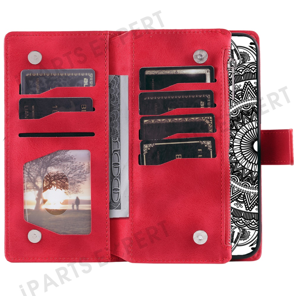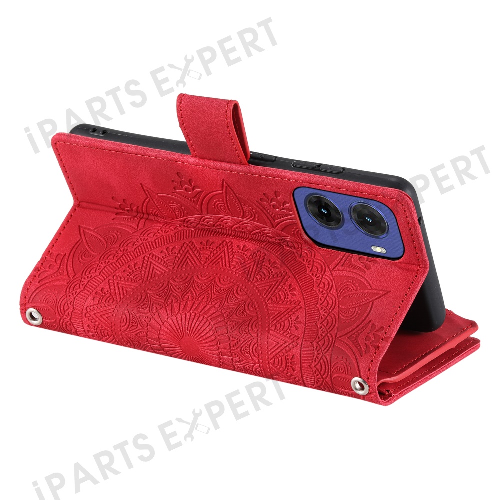 Style 006 For Motorola Moto G05 4G Wallet Case PU Leather Phone Cover Mandala Flower Pattern - Red