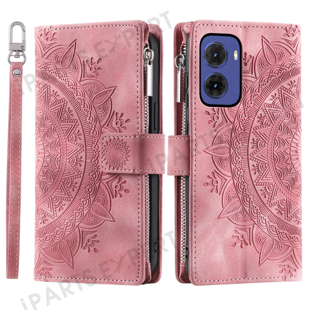 Style 006 For Motorola Moto G05 4G Wallet Case PU Leather Phone Cover Mandala Flower Pattern - Rose Gold