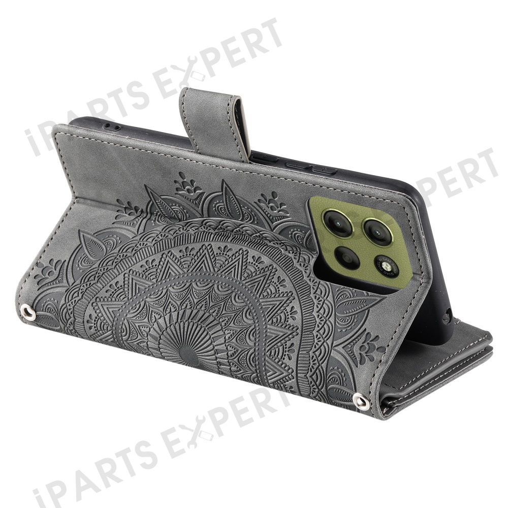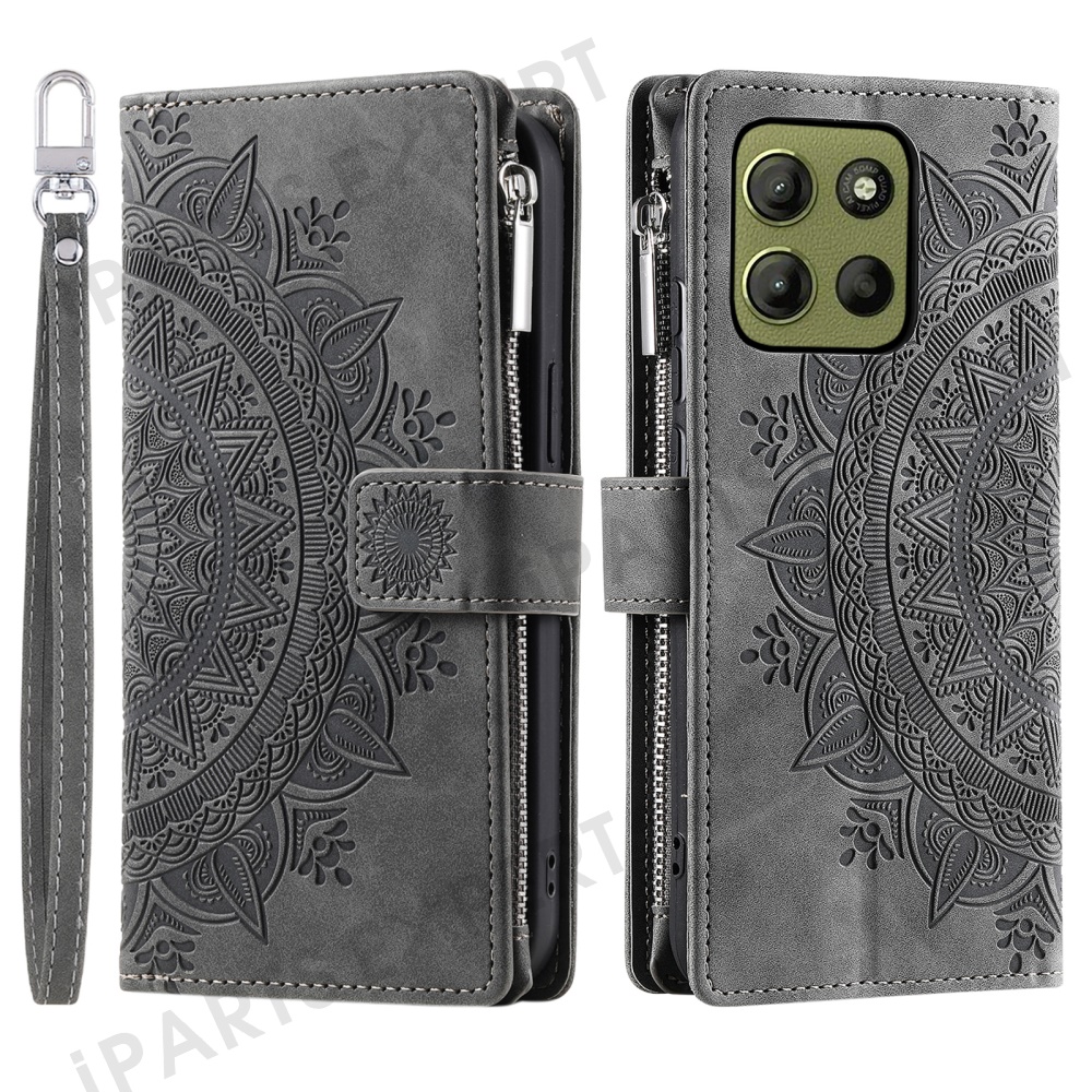 Style 006 For Motorola Moto G15 4G Wallet Case PU Leather Phone Cover Mandala Flower Pattern - Grey