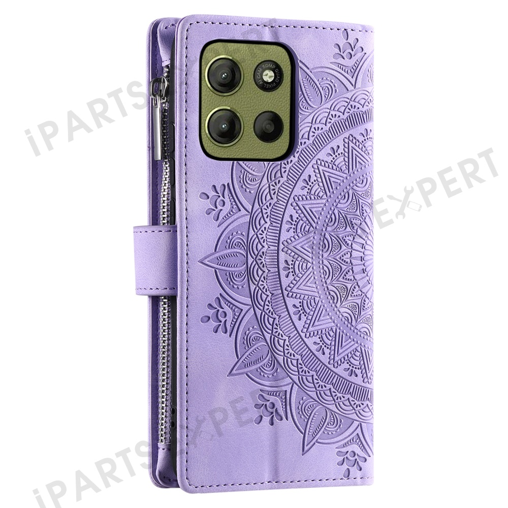 Style 006 For Motorola Moto G15 4G Wallet Case PU Leather Phone Cover Mandala Flower Pattern - Purple