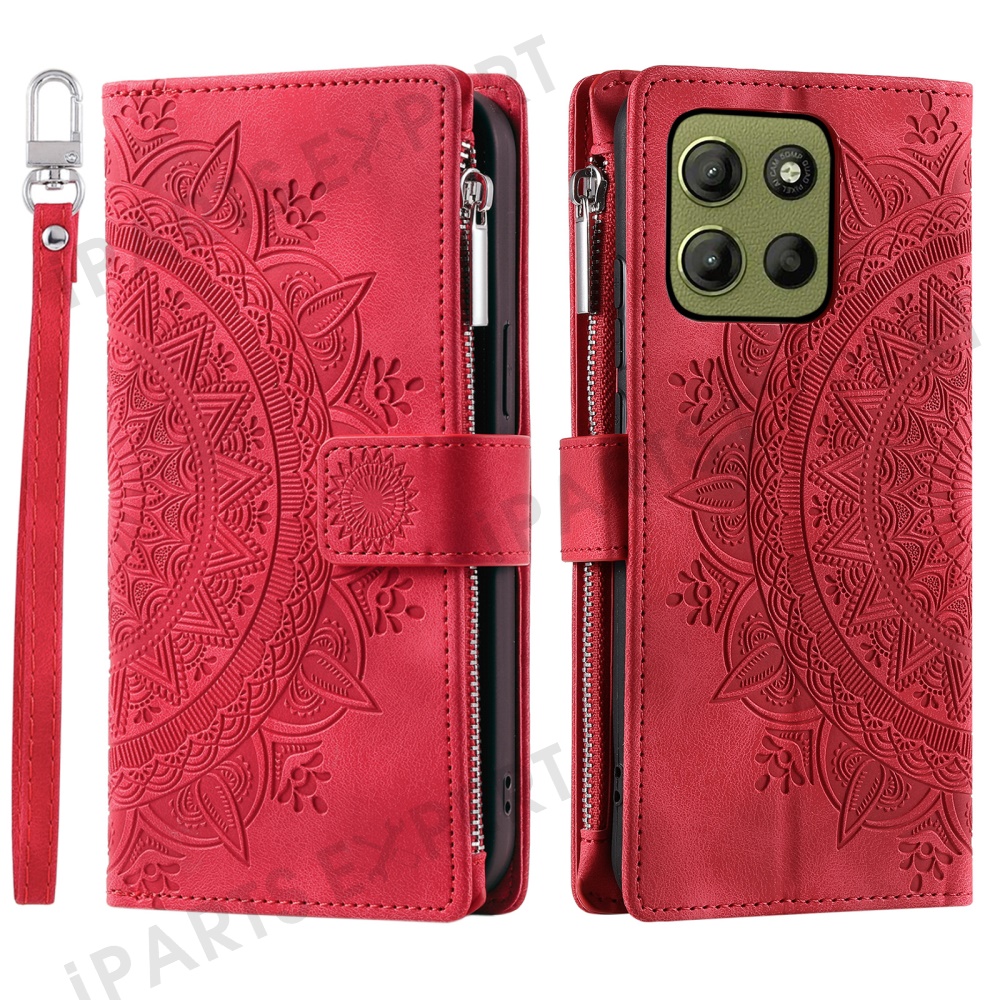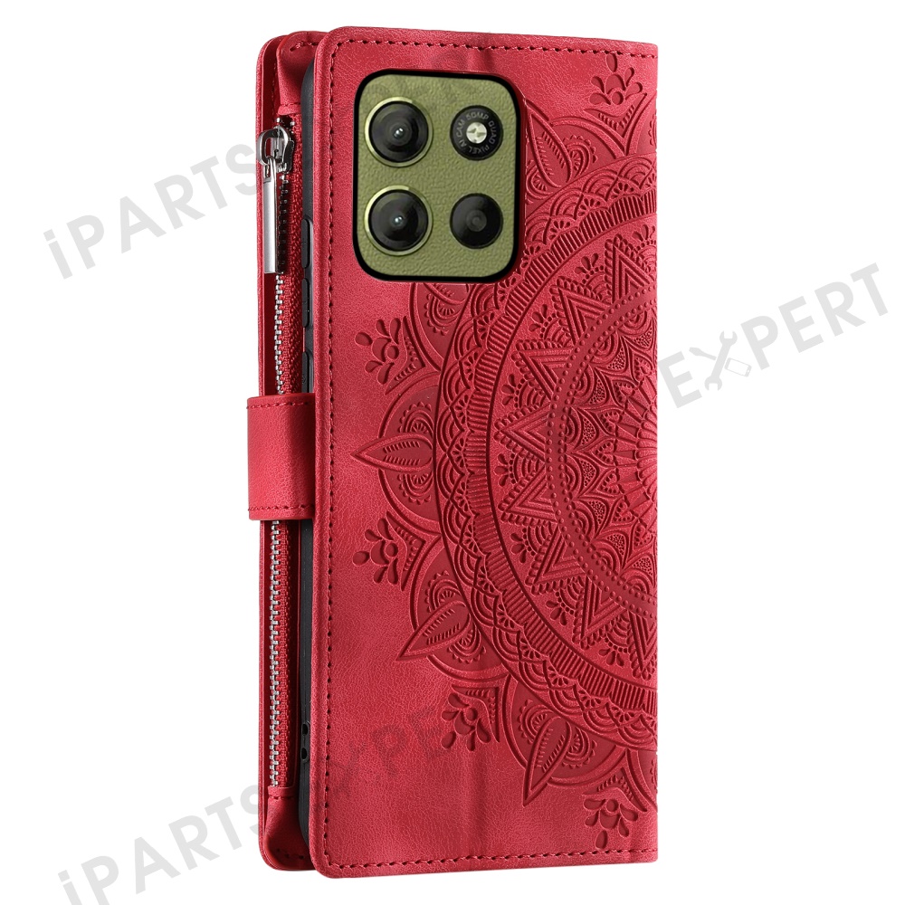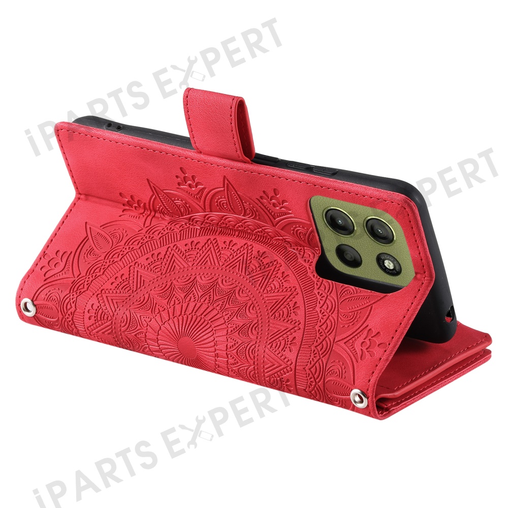 Style 006 For Motorola Moto G15 4G Wallet Case PU Leather Phone Cover Mandala Flower Pattern - Red