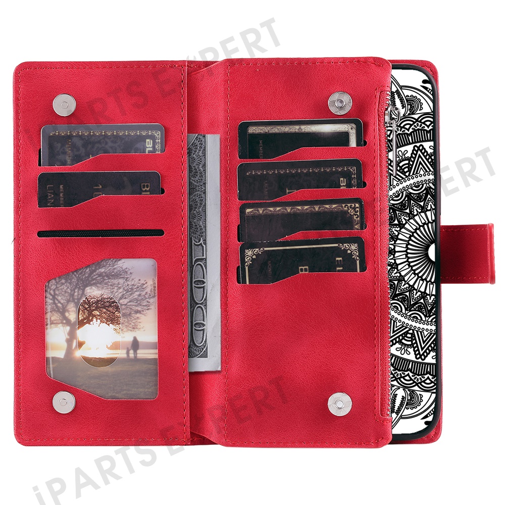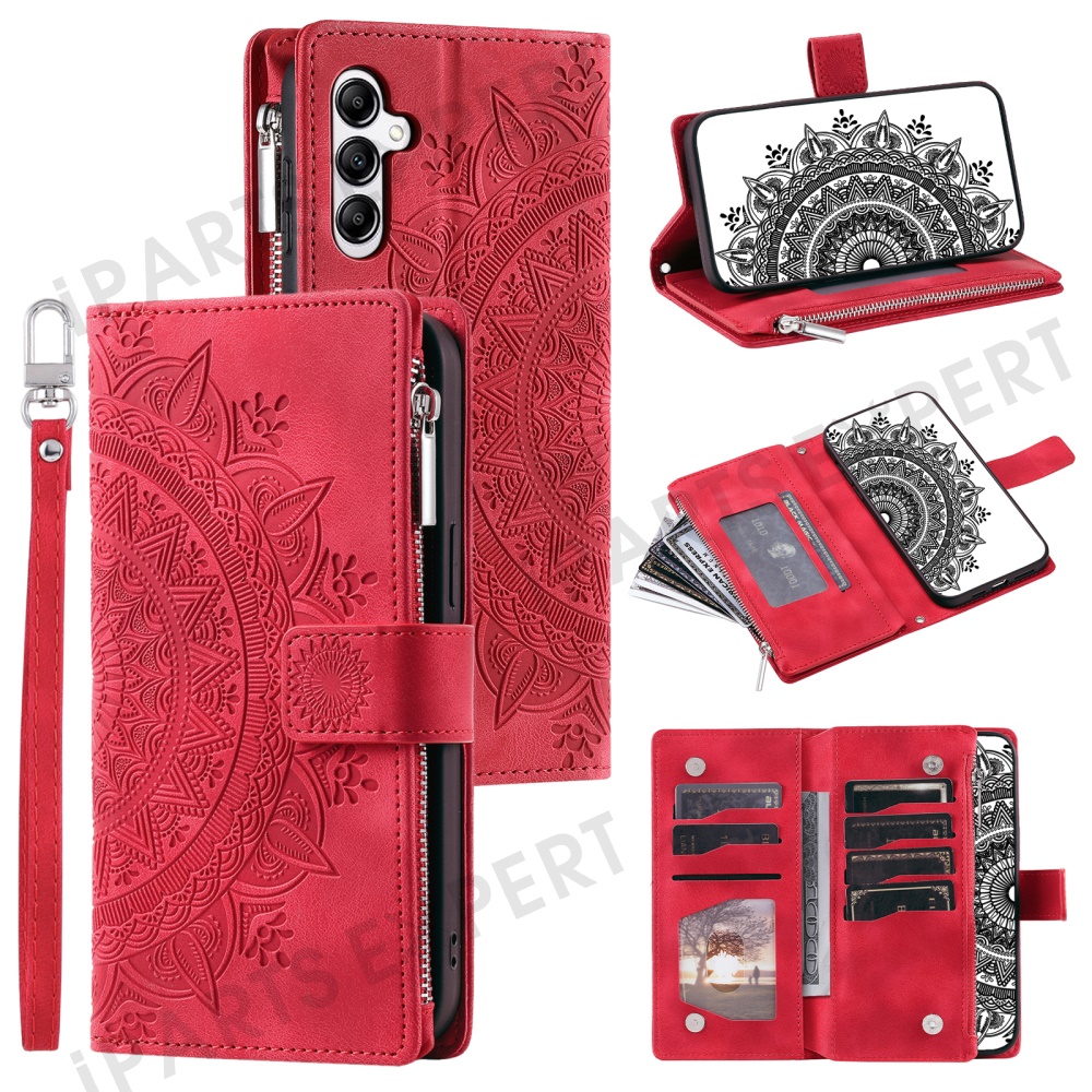 Style 006 For Samsung Galaxy A26 5G Wallet Case PU Leather Phone Cover Mandala Flower Pattern - Red