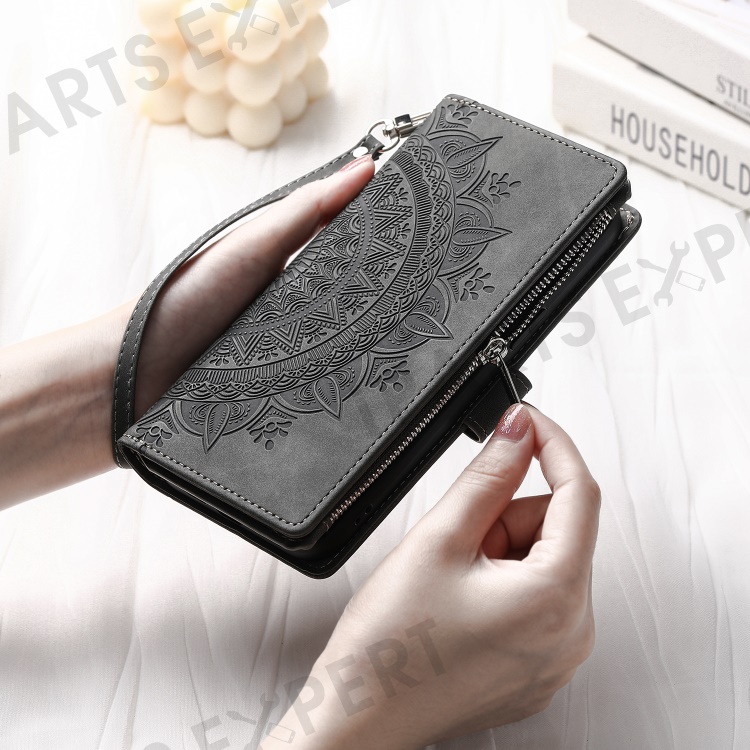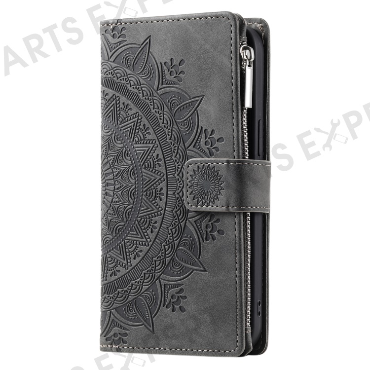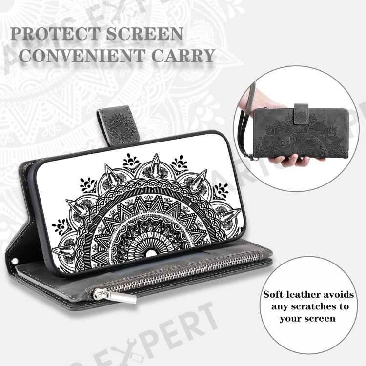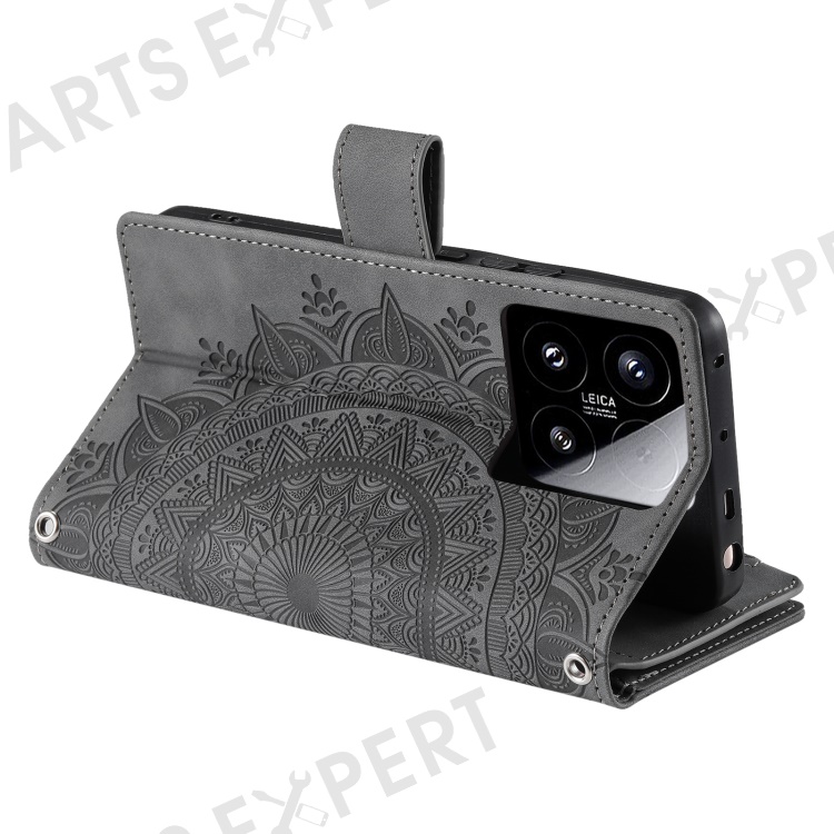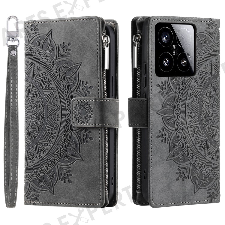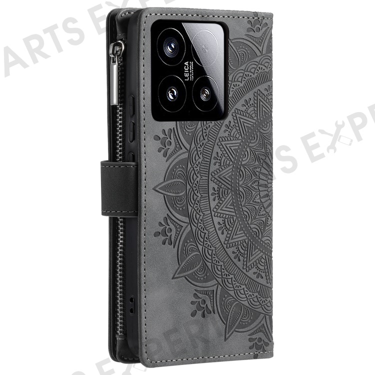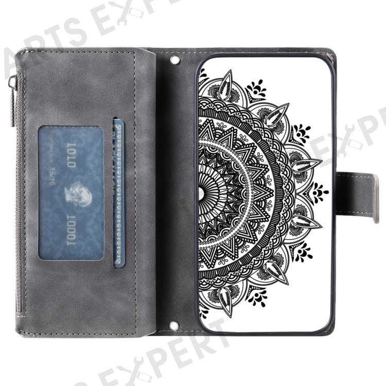 Style 006 For Xiaomi 15 Wallet Case PU Leather Phone Cover Mandala Flower Pattern - Grey