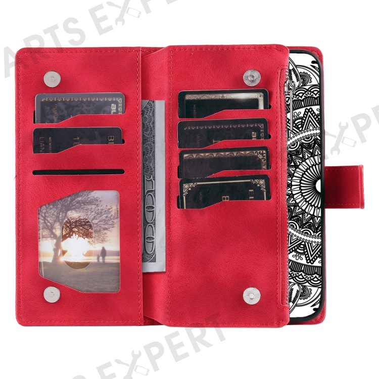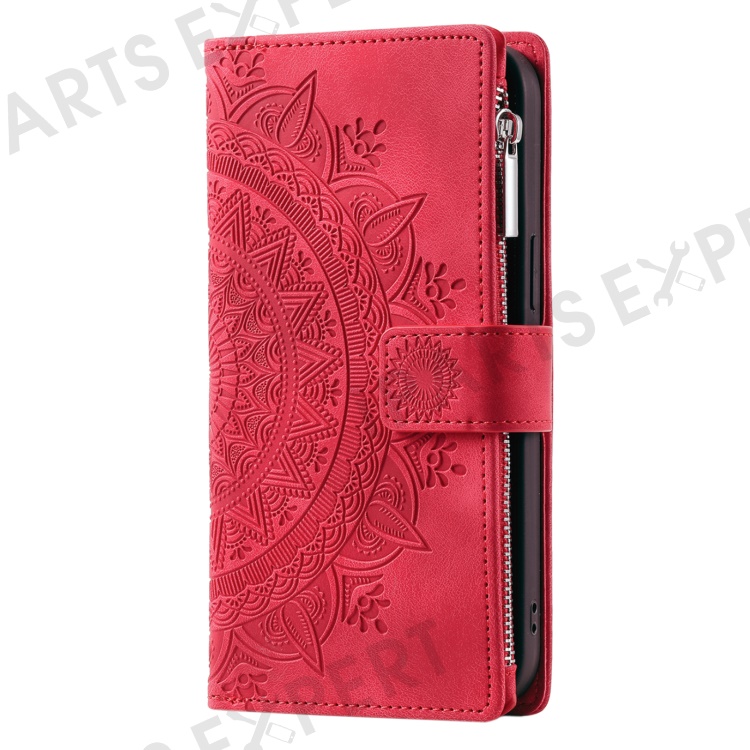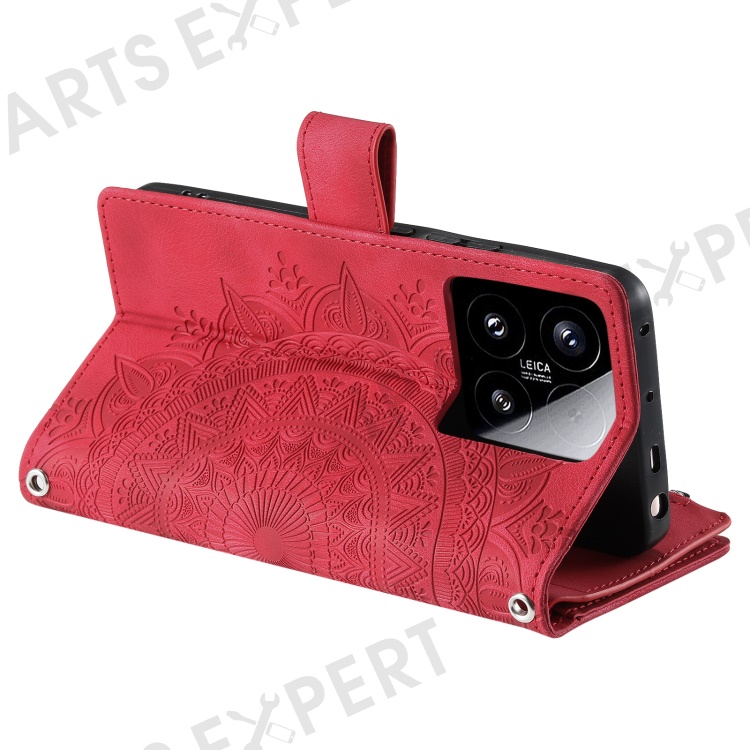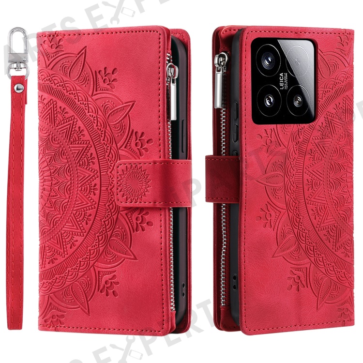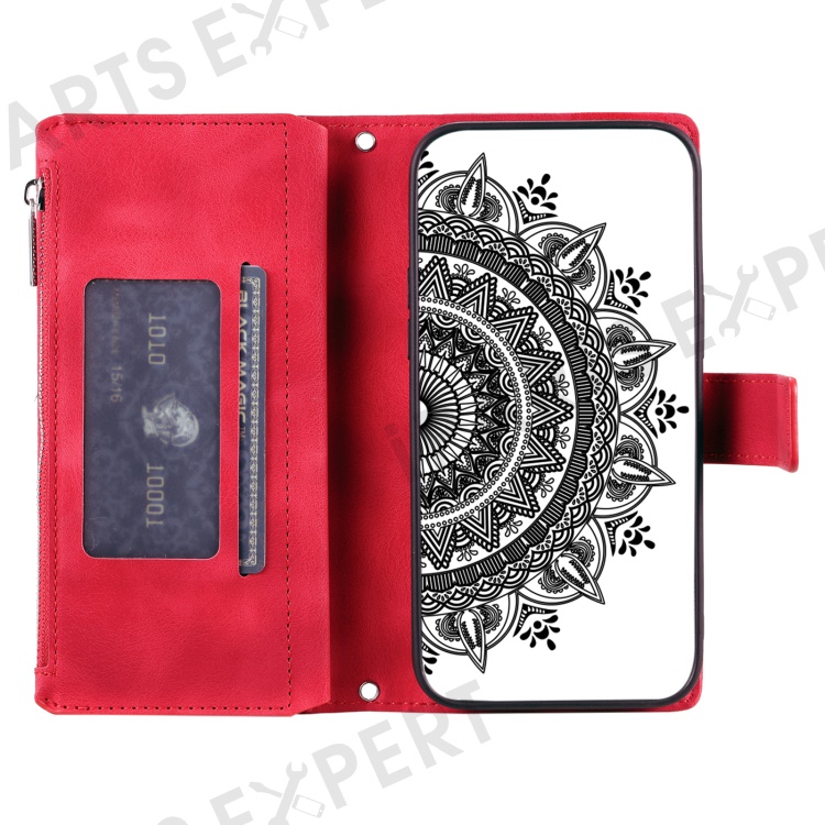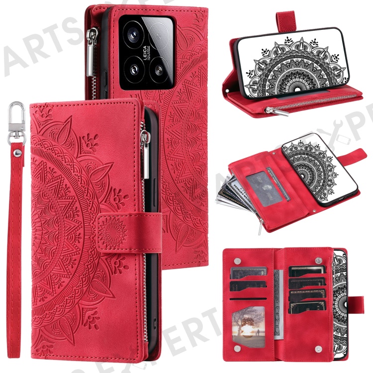 Style 006 For Xiaomi 15 Wallet Case PU Leather Phone Cover Mandala Flower Pattern - Red