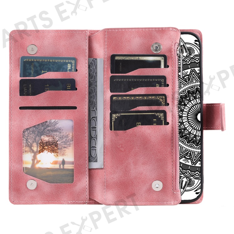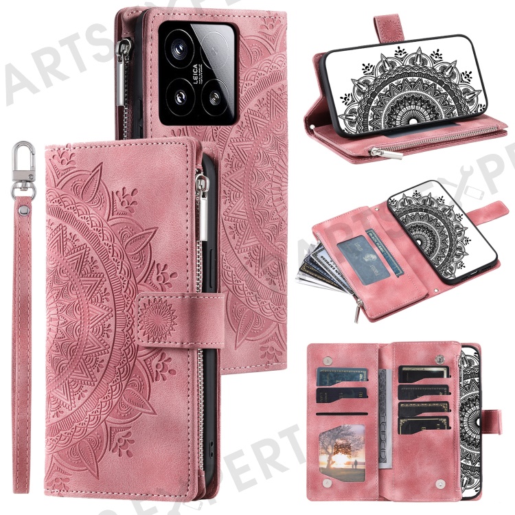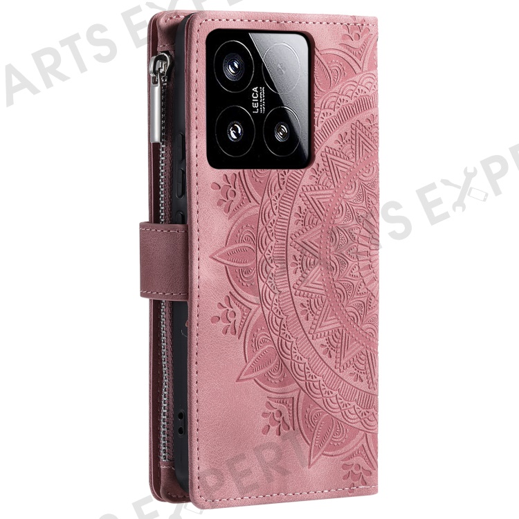 Style 006 For Xiaomi 15 Wallet Case PU Leather Phone Cover Mandala Flower Pattern - Rose Gold