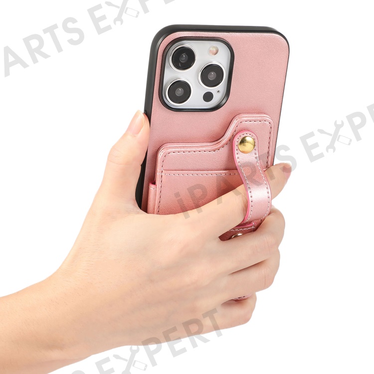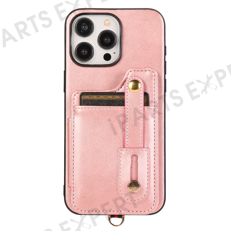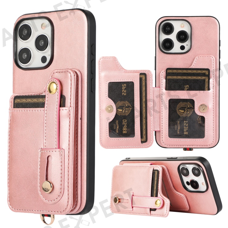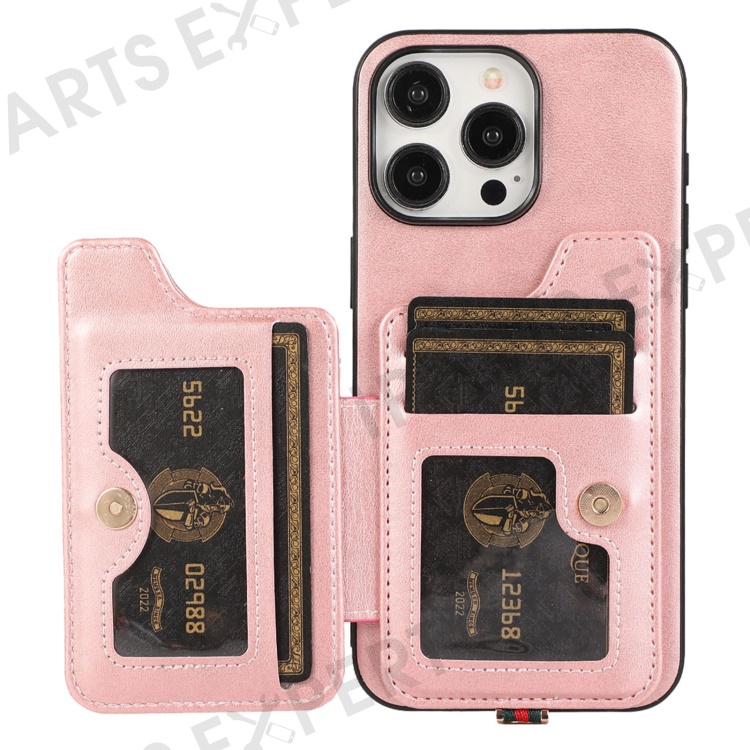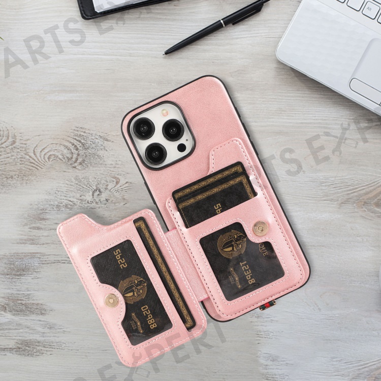 Style 01 For iPhone 14 Pro Case Card Holder Cowhide Texture PU Leather+TPU Phone Cover - Pink